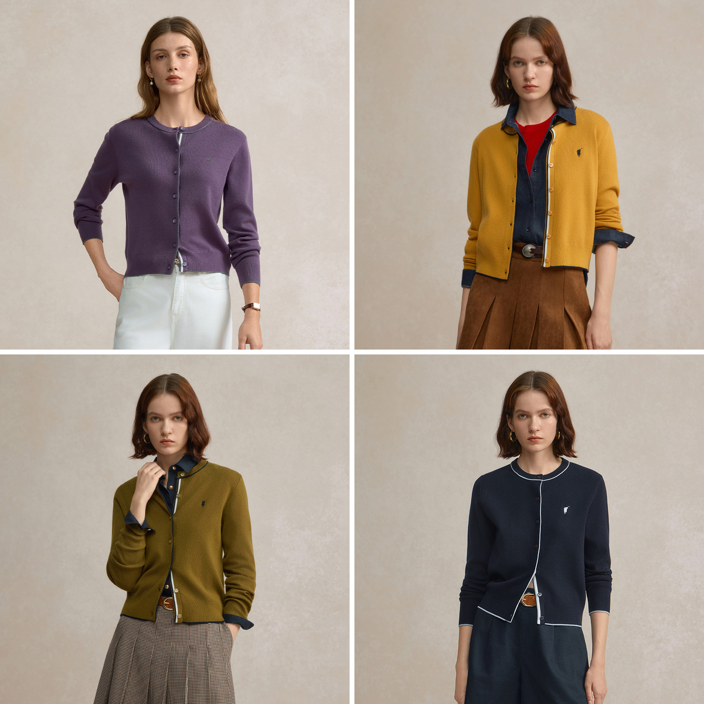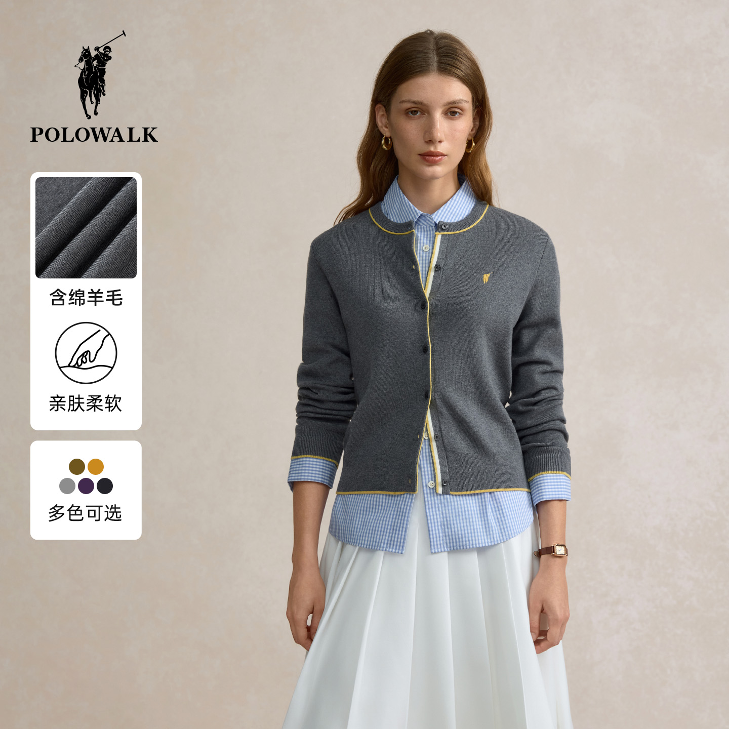 新品 女 POLOWALK长袖 开衫 修身 薄款 2025秋季 女式 针织衫 含绵羊毛