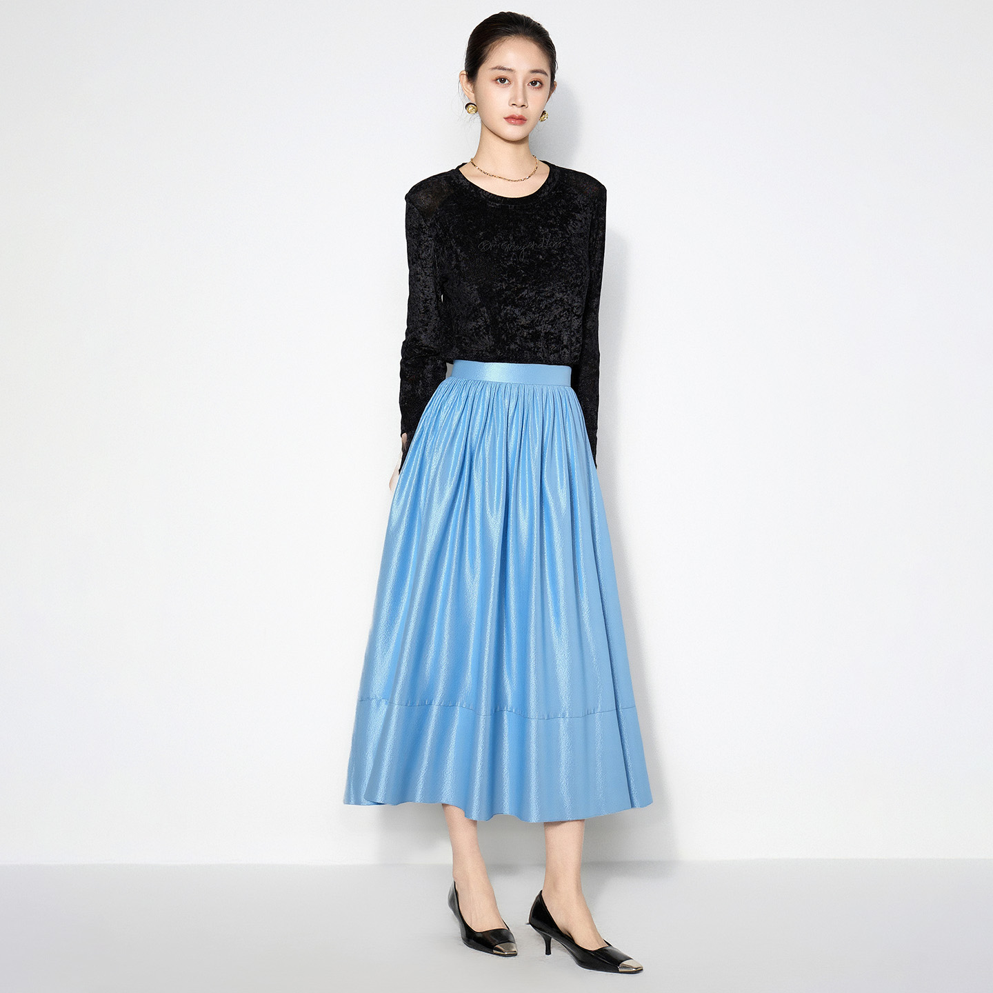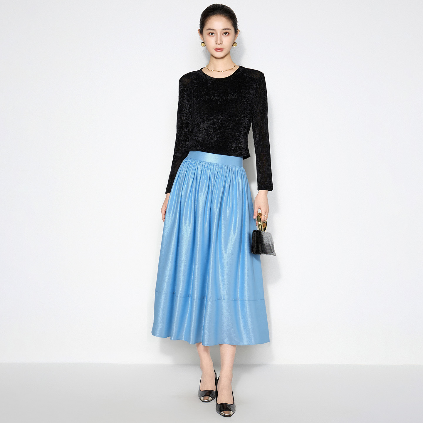 气质宽松下摆蕾丝拼接裙子女装 秋季 507358 2025新款 三福半身裙长款