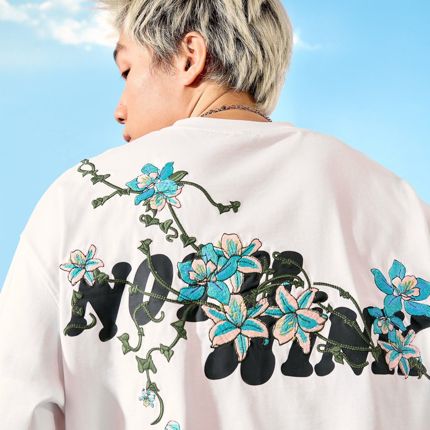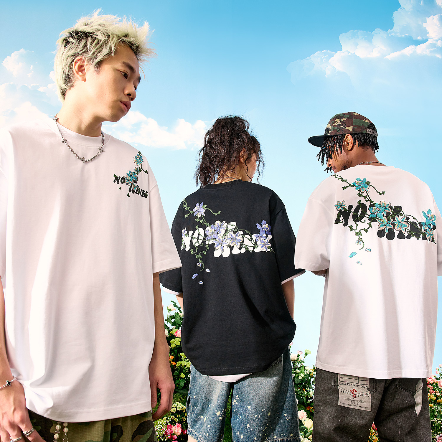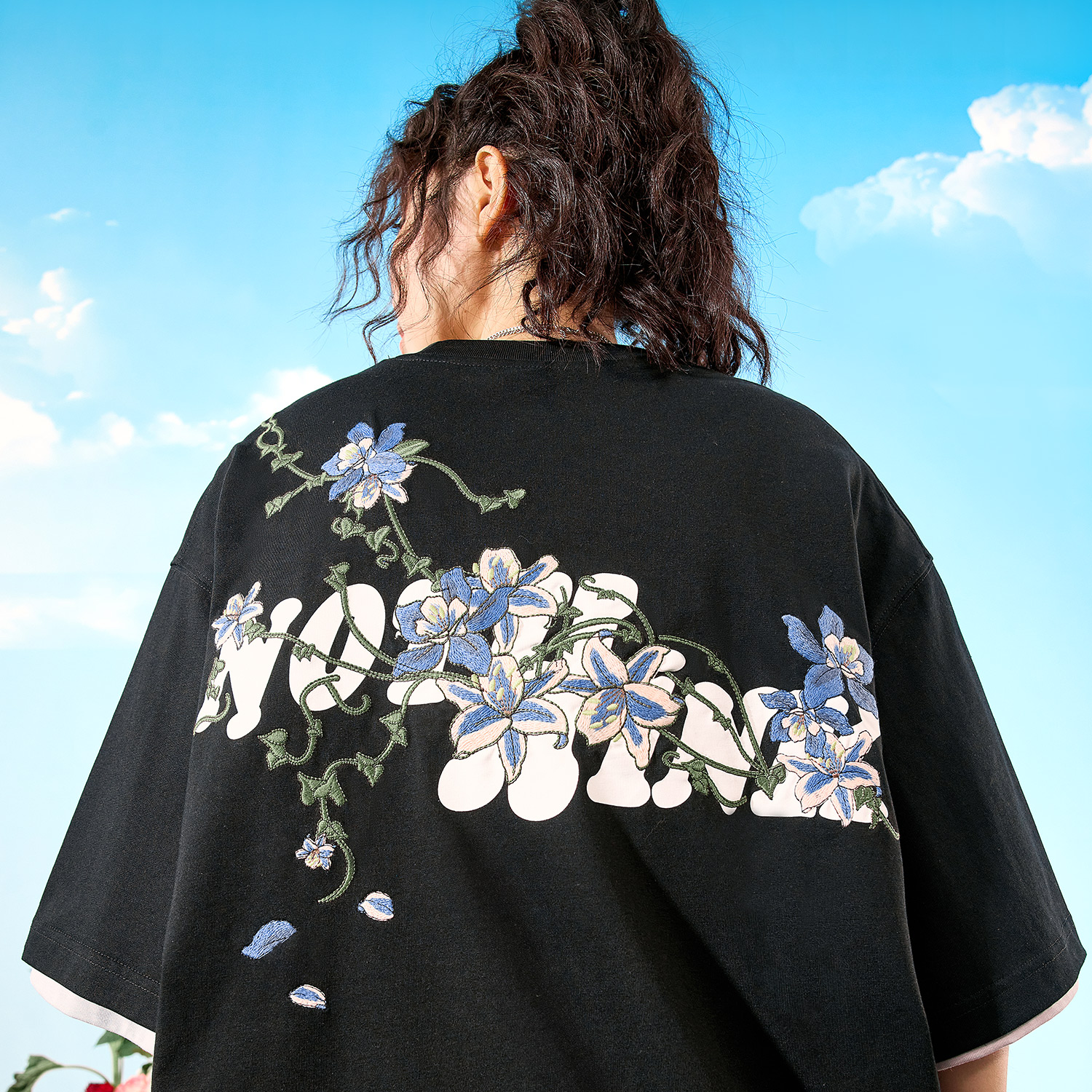 Nuthink重磅刺绣花卉短袖 T恤潮牌字母印花纯棉情侣男女2025夏新款