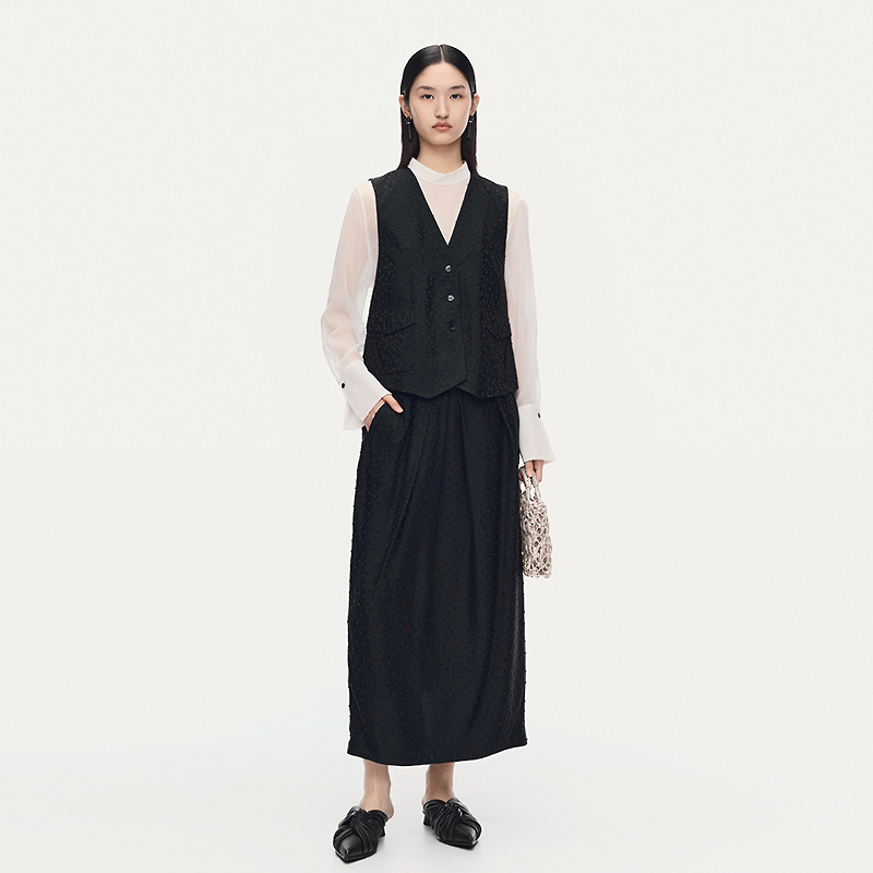 提花肌理修身 新款 AUM噢姆2025年秋季 黑色马甲半身裙 轻松套装