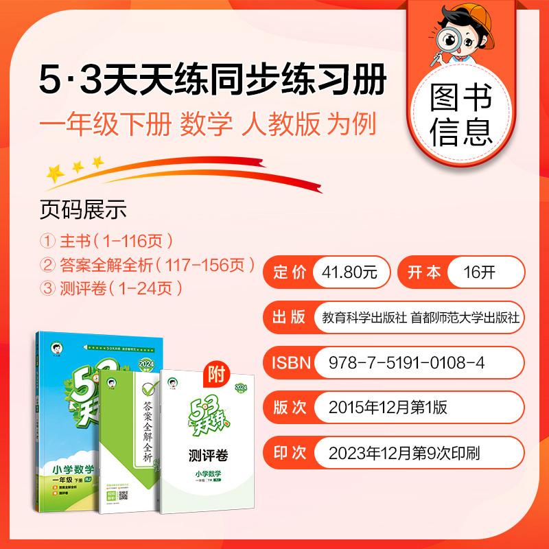 53天天练一二三四五六年级语文数学英语同步练习册人教2024秋小学配套教材上册思维语数英6年级预习