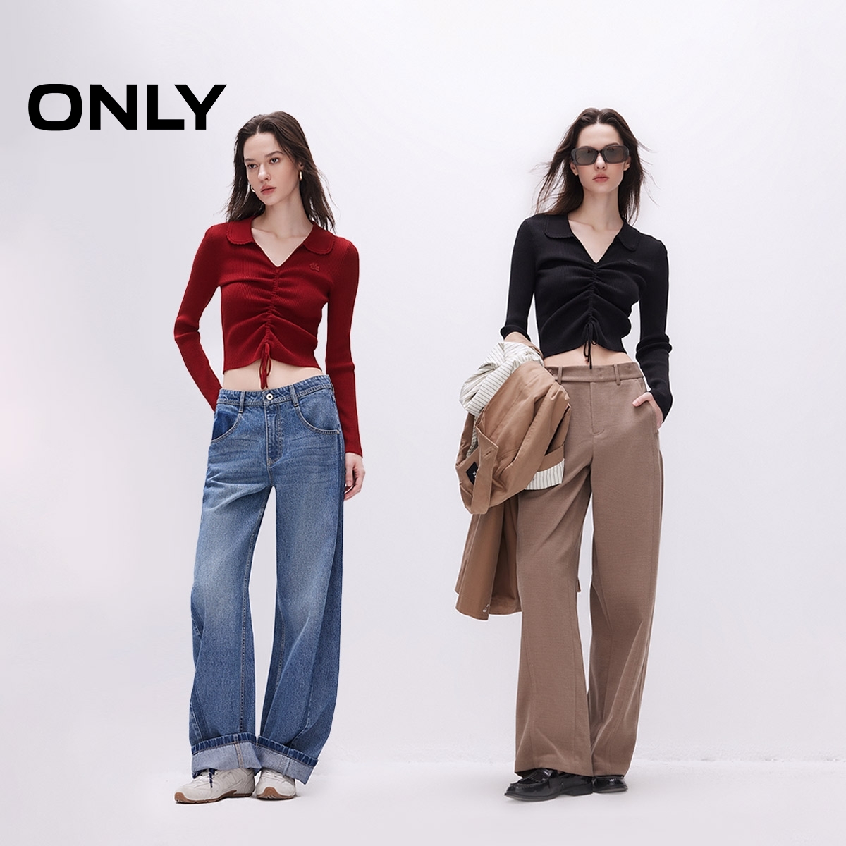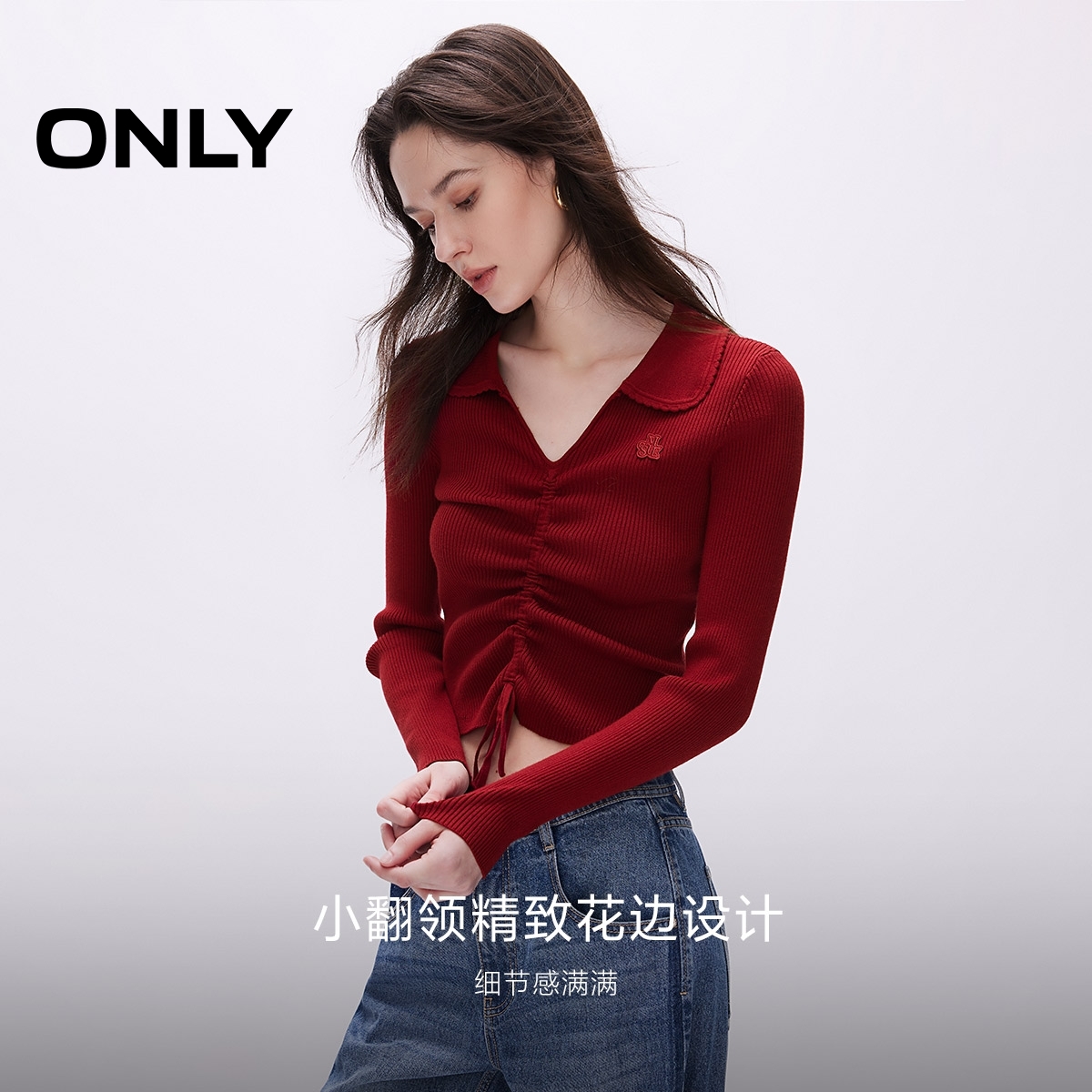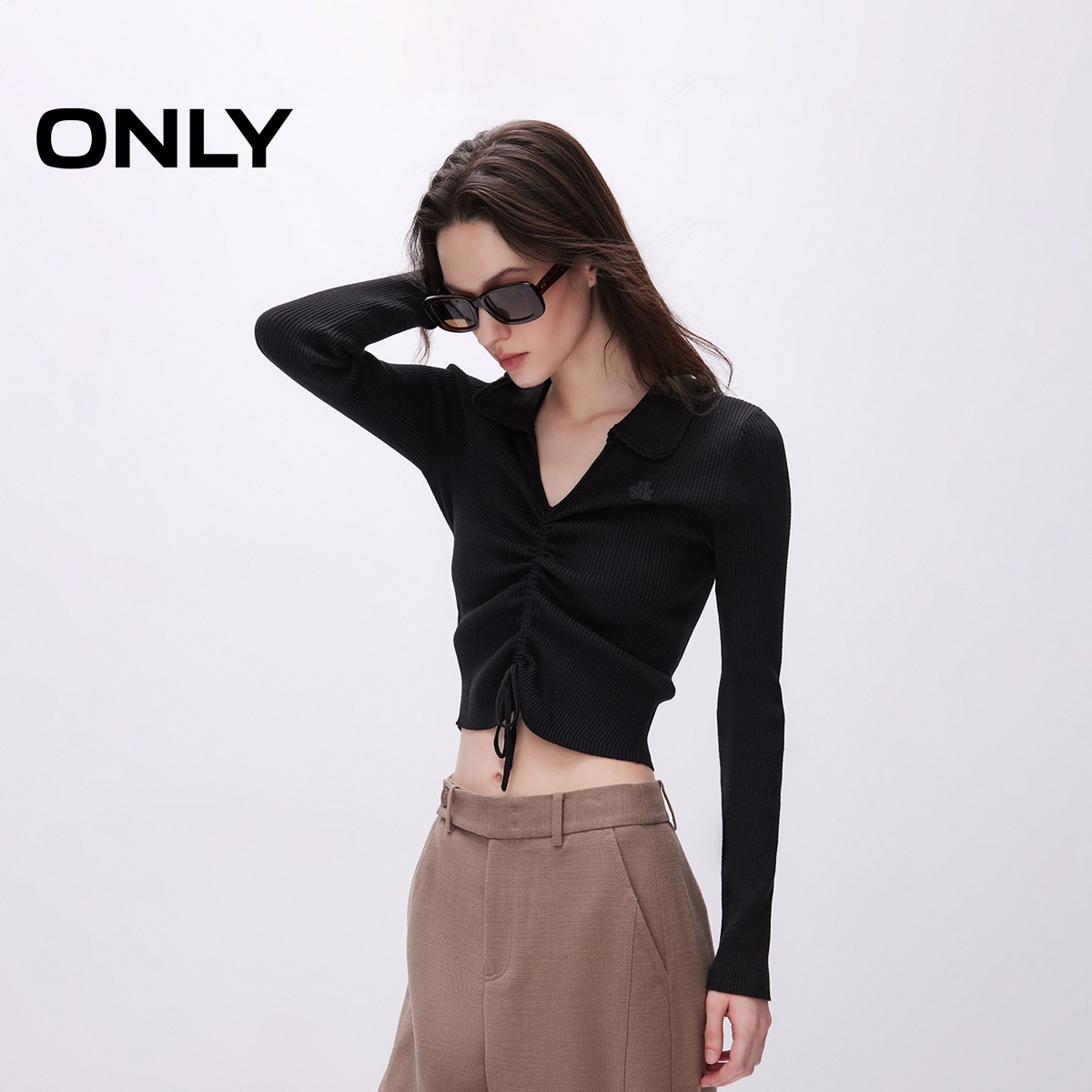 新款 针织衫 休闲时尚 短款 女 气质V领抽绳修身 ONLY2025秋季