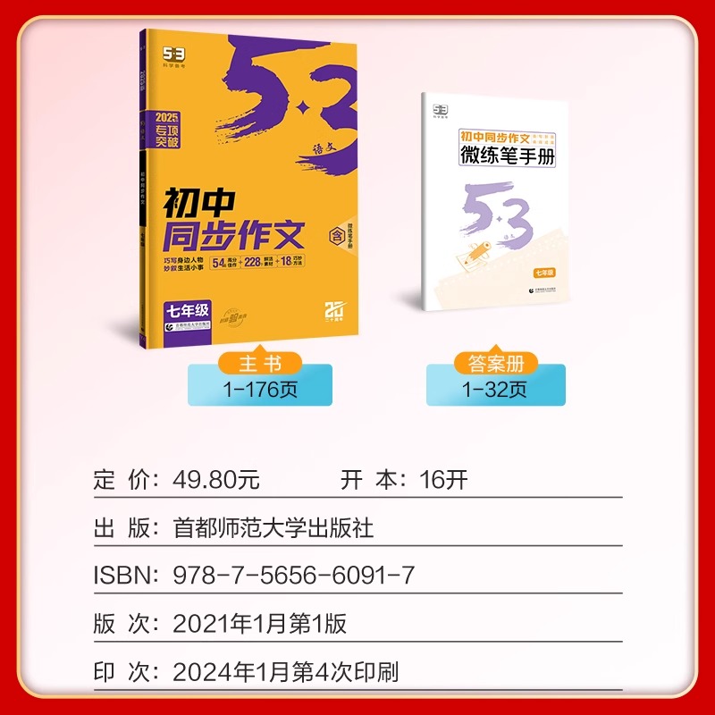 2026新版 53初中同步作文七年级中考53语文专项写作技巧满分作文素材作文书初中名著导读必背古诗文五年中考三年模拟五三