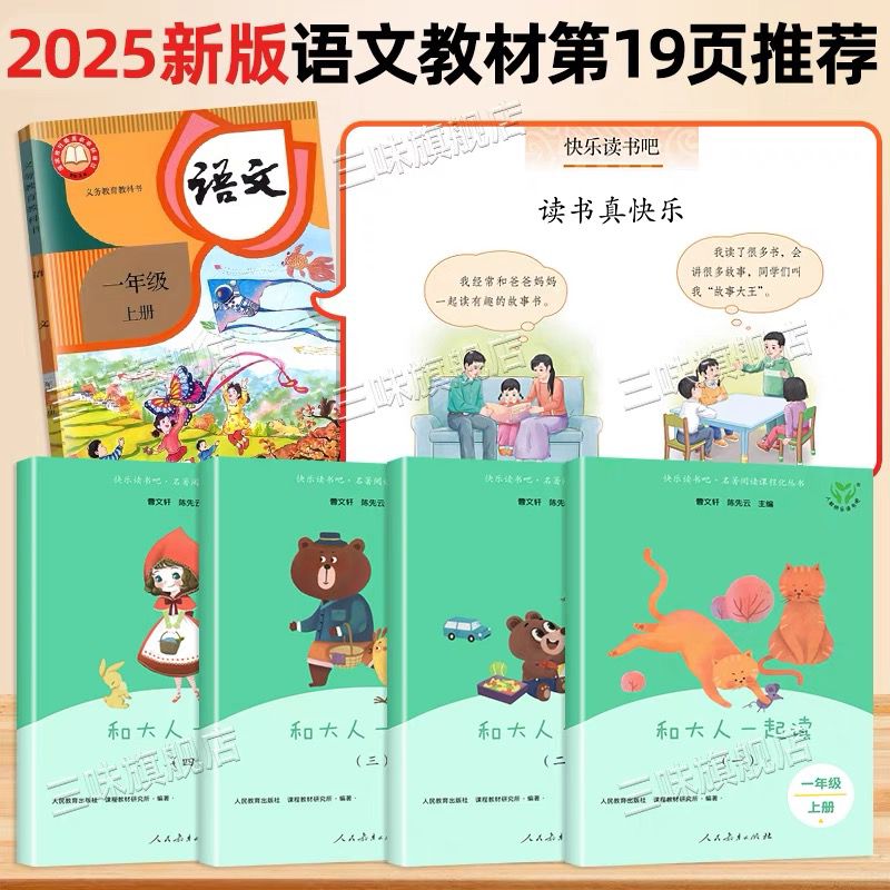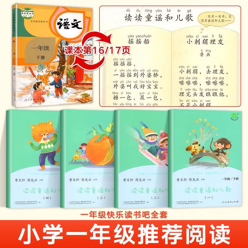 社曹文轩小学生书籍阅读课外书木头书目童谣注音版 和大人一起读一年级上册全套4册快乐读书吧人民教育出版 儿歌配套 人教版 2025新版