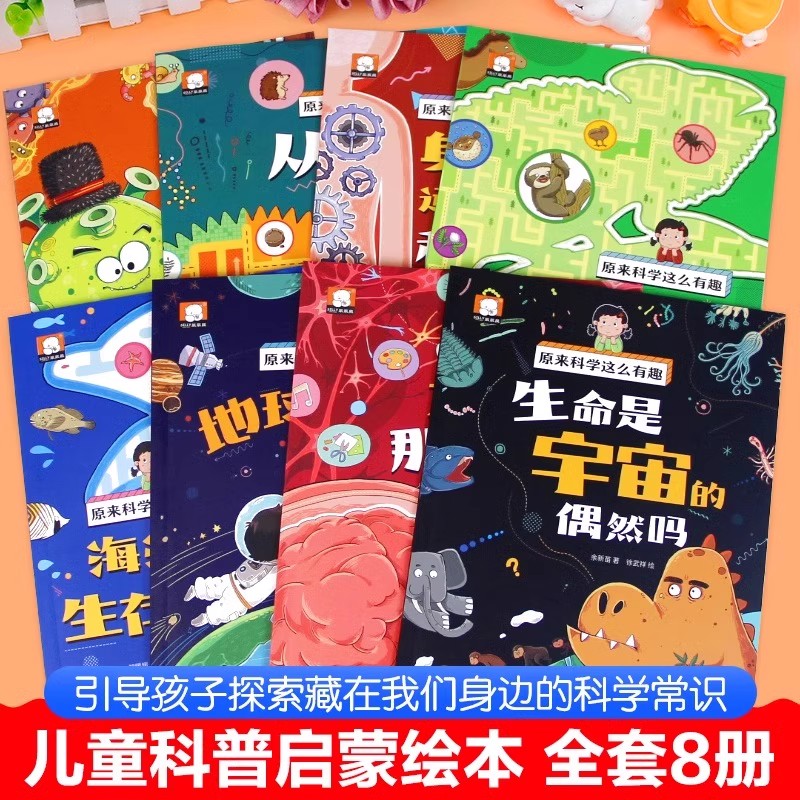 书籍少儿科普类书籍百科全书小学生幼儿童认知启蒙物理趣味科学漫画书绘本 全8册原来科学这么有趣正版 2025新版 注音版