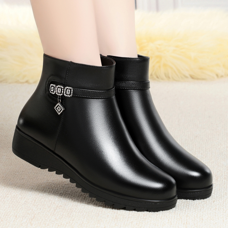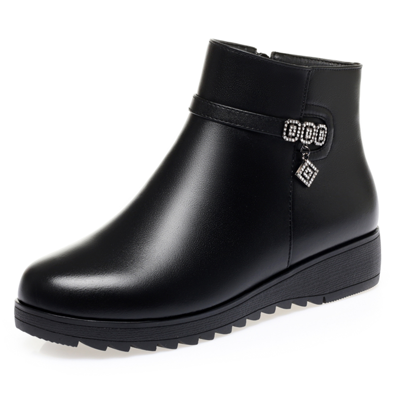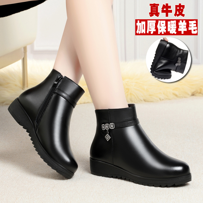 冬加绒软底短靴真皮羊毛老人棉皮鞋 女鞋 女士棉靴 棉鞋 中老年妈妈鞋