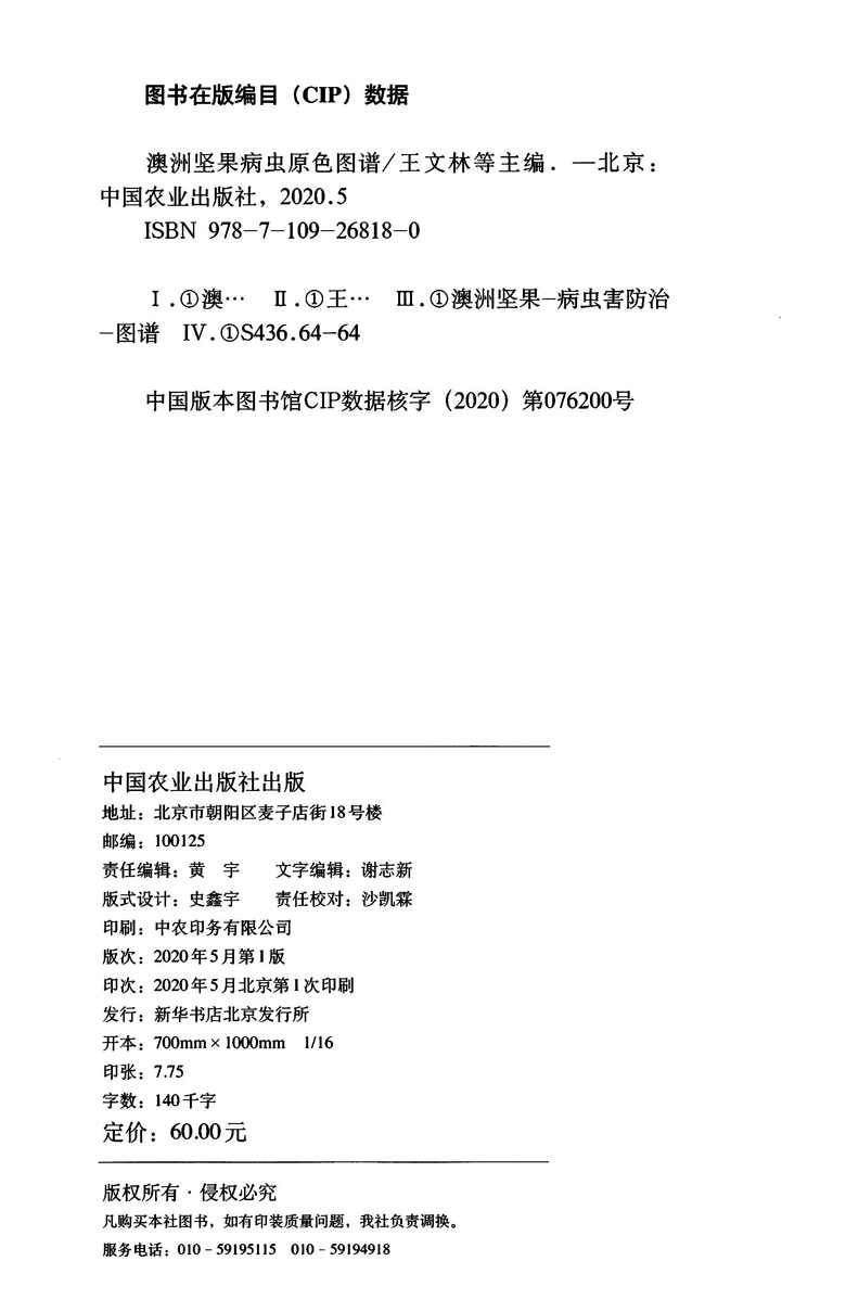 中国农业出版 王文林等 社 9787109268180 澳洲坚果病虫原色图谱