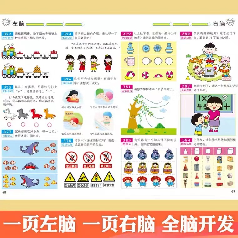 左右脑综合能力训练300题儿童大脑潜能智力开发3岁到7岁益智幼儿数学启蒙逻辑思维训练书籍早教书 3岁 新版 智力开发300题2