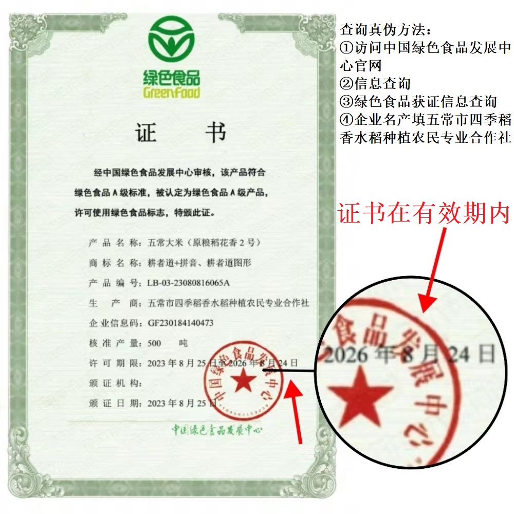 五常大米稻花香2号绿色食品耕者道24新米黑龙江东北大米5kg编织袋