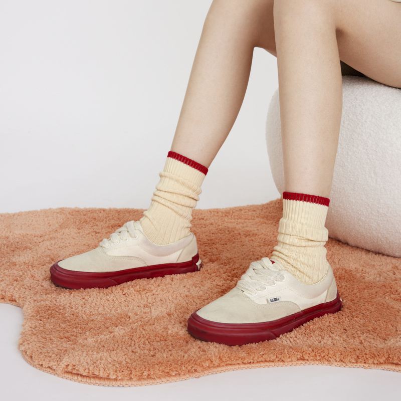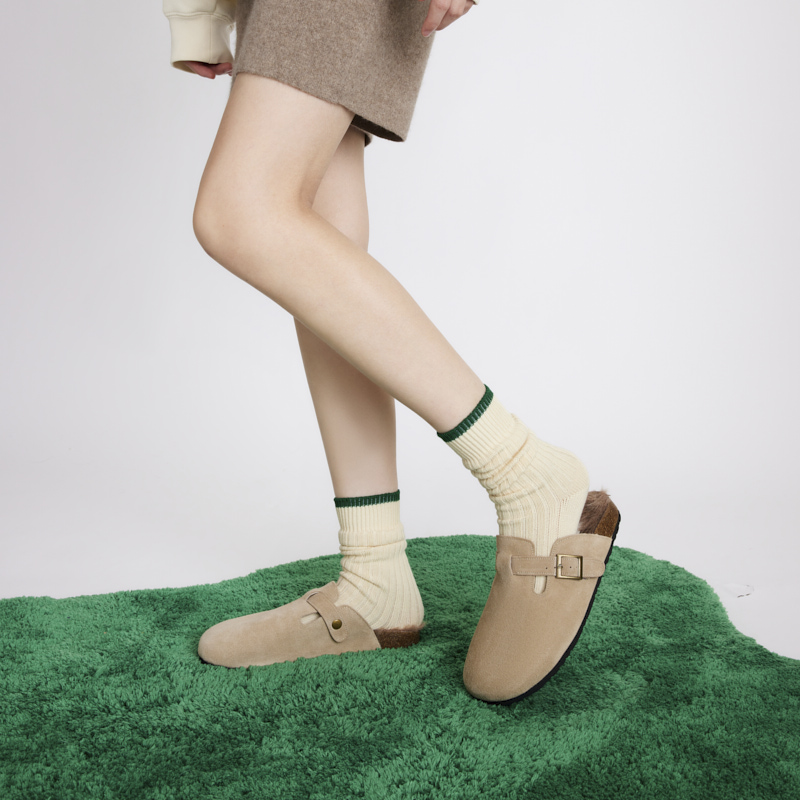 上森袜子女中筒袜春秋款 复古长袜白色堆堆袜 粗线针织毛线袜勃肯鞋
