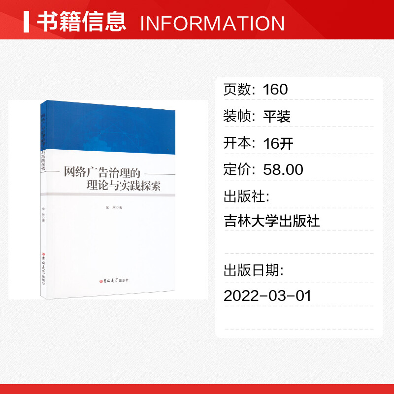 著 广告营销经管 吉林大学出版 理论与实践探索 社 图书籍 席琳 新华书店正版 网络广告治理 励志