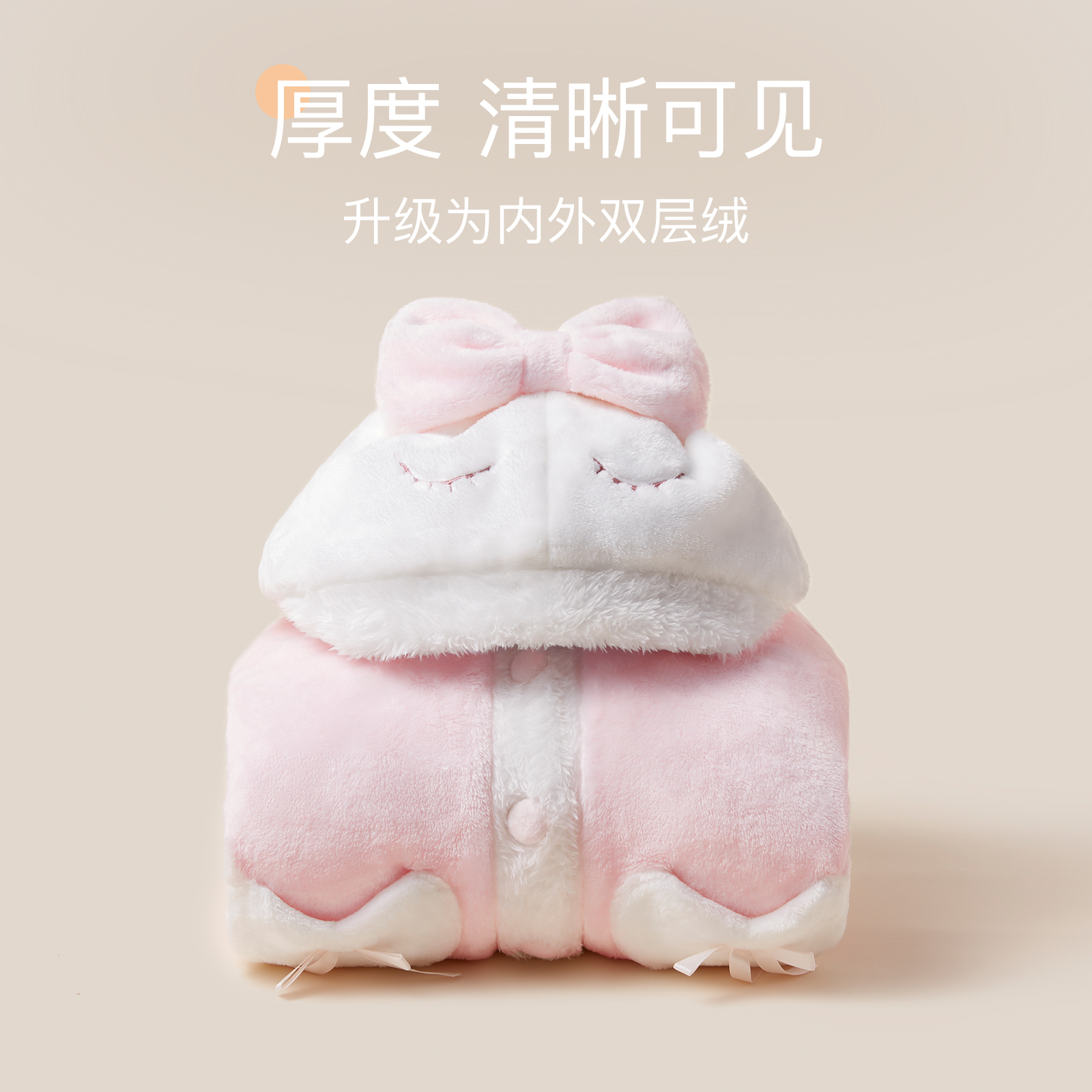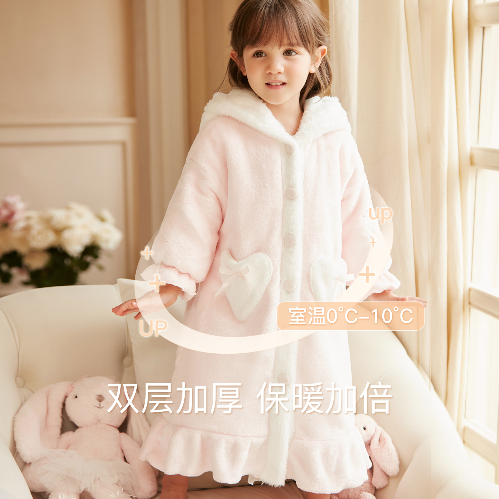 雪雅可儿童睡袍女孩冬季 女童法兰绒浴袍中大童宝宝睡衣 珊瑚绒长款