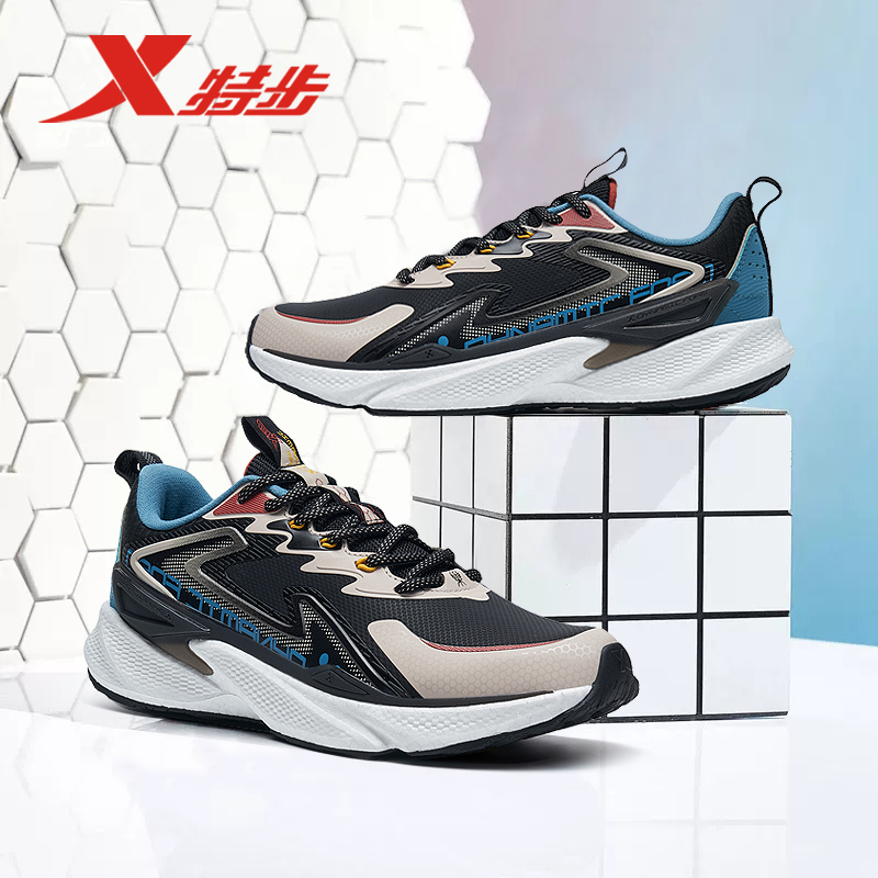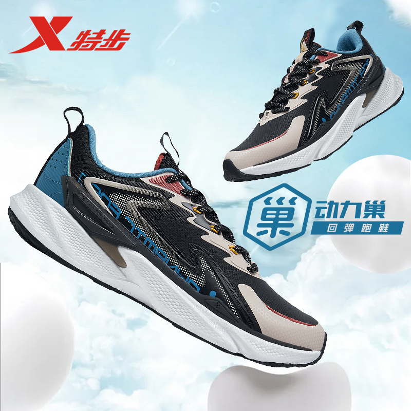 动力巢减震跑鞋 休闲运动鞋 秋冬新款 男士 子 皮面加绒跑步鞋 特步男鞋