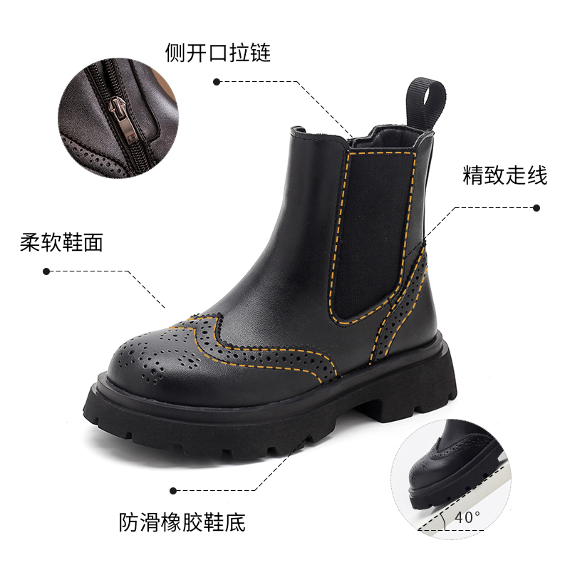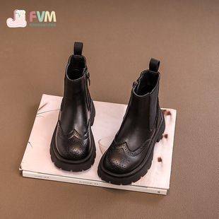 FVM女童靴子儿童马丁短靴2025新款 加绒皮靴小公主宝宝洋气 秋冬季
