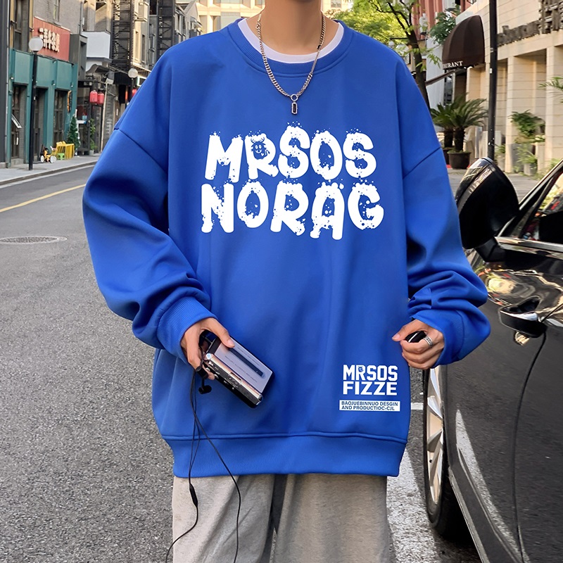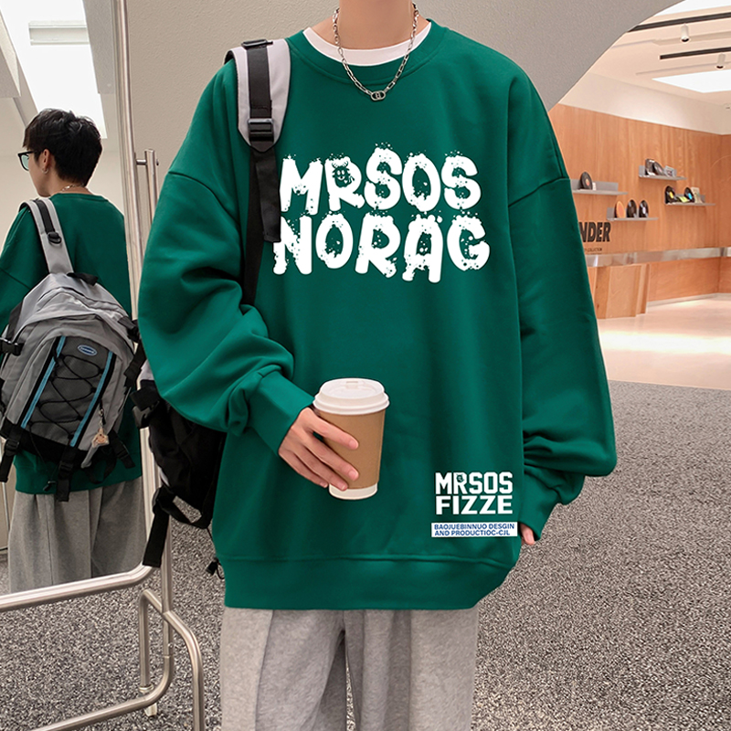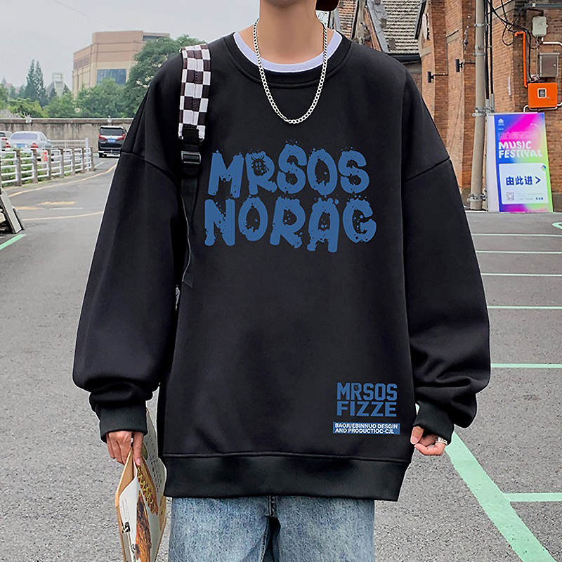 港风打底衫 2025新款 潮牌无帽外套长袖 套头宽松圆领卫衣男春秋季