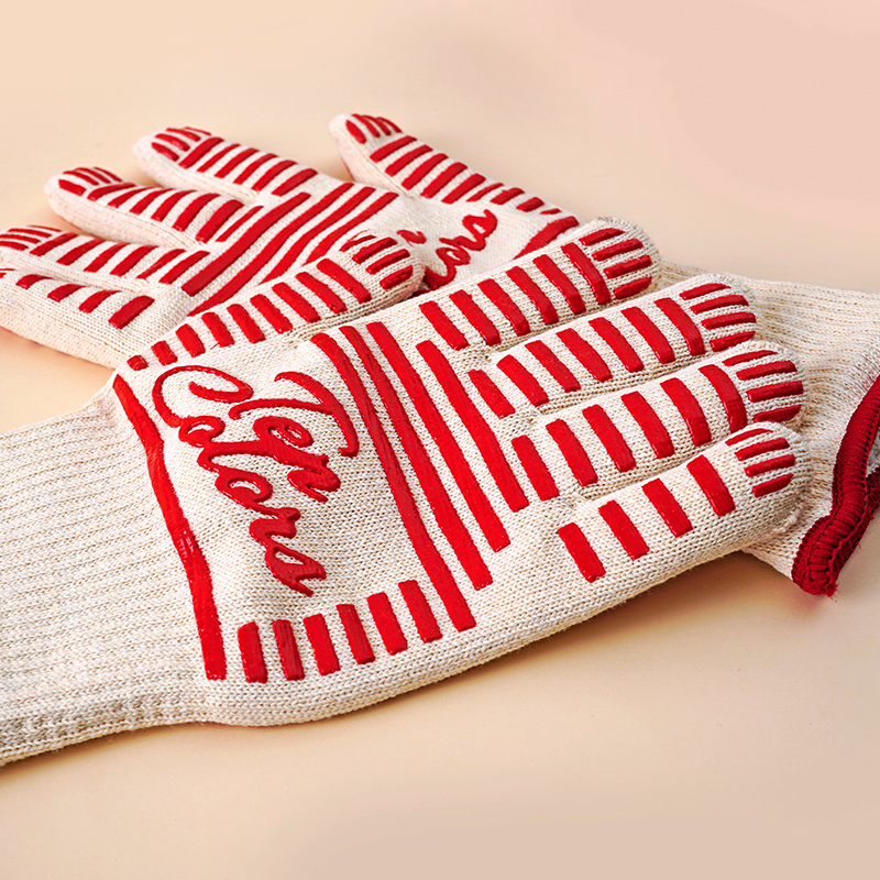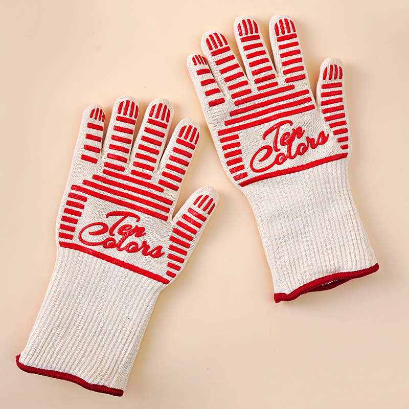 加长防烫手套红色防滑硅胶条烤箱微波炉专用隔热五指家用烘焙工具