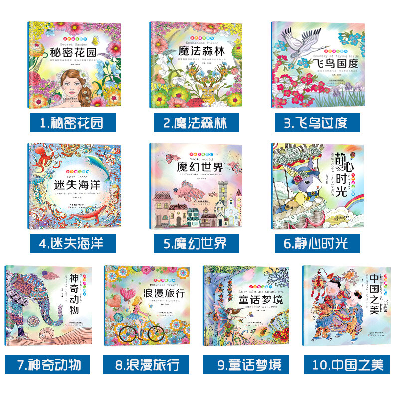 全10册涂色减压系列秘密花园成人儿童减压解压系列书籍童话梦境神秘海洋魔幻森林手绘彩绘填色书色彩艺术创作涂鸦图画涂色填色绘画