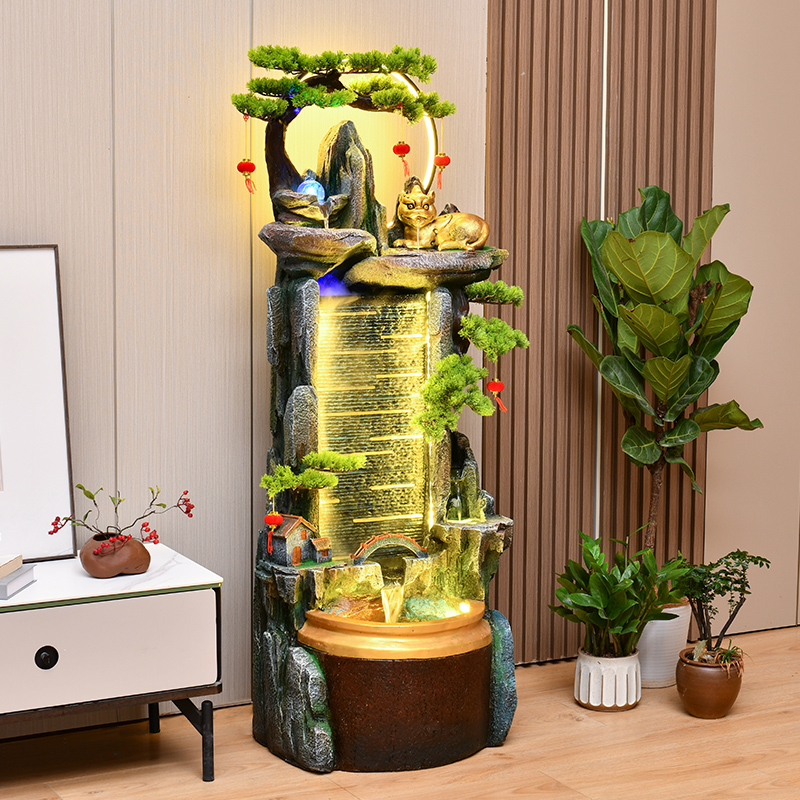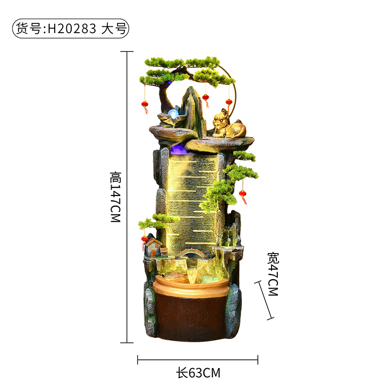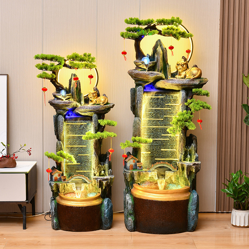 新中式 流水摆件落地水幕墙风水轮循环水招财水景开业鱼缸造景喷泉