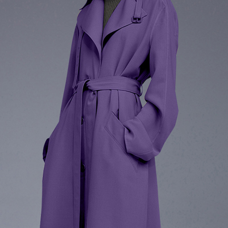 流行色春秋大衣长款 高端气质风衣外套女2025春季 紫色修身 时尚 新款