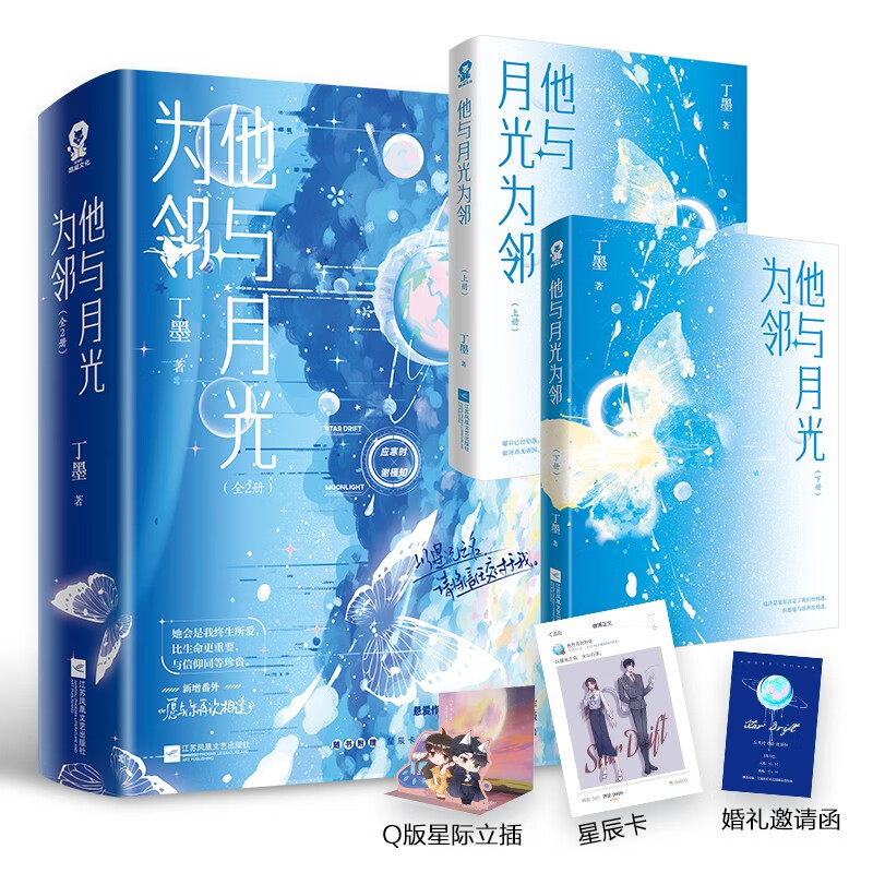 全2册 青春文学 Q版 重生甜宠星际幻想悬爱 著 丁墨 他与月光为邻 婚礼邀请函 星际立插 赠星辰卡