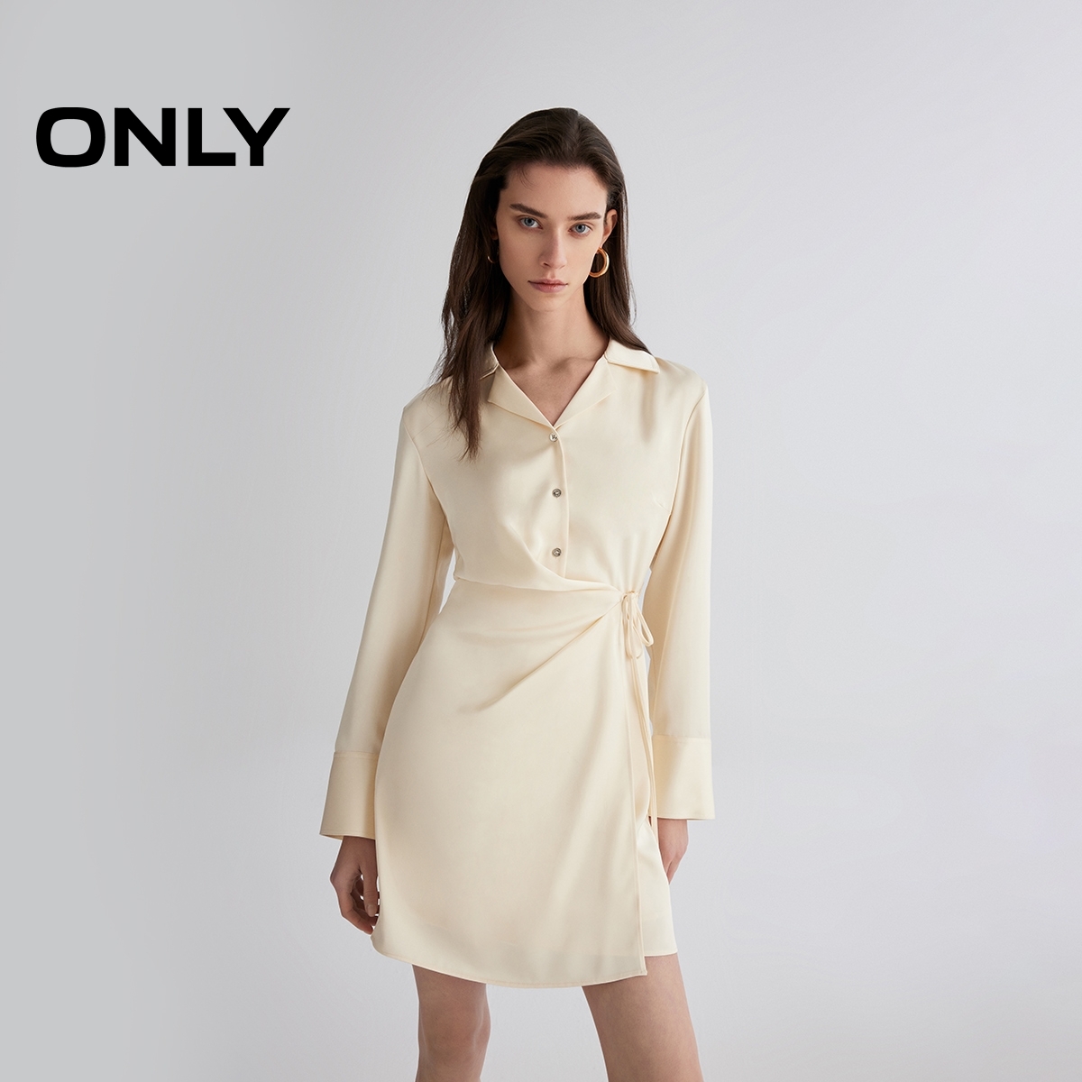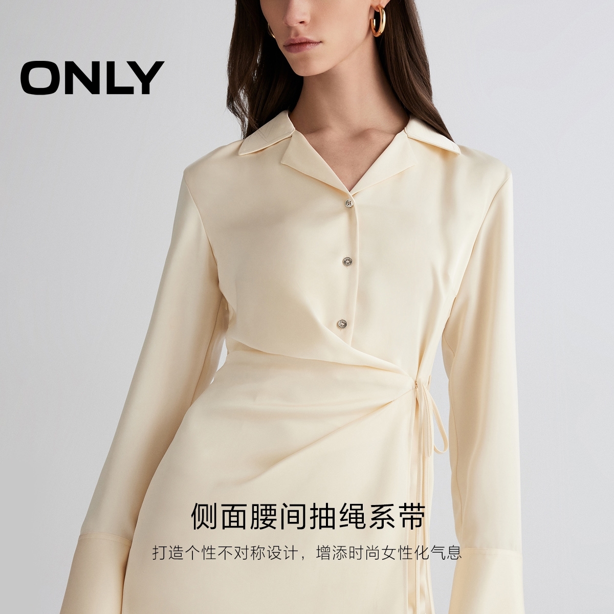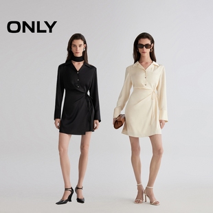 裙短裙连衣裙女 翻领不对称舒适亲肤纯色系带衬衫 ONLY2025夏季 新款