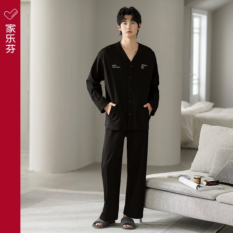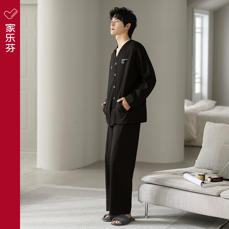 纯棉长袖 秋季 家居服男款 薄款 家乐芬睡衣男士 休闲可外穿套装 春秋款