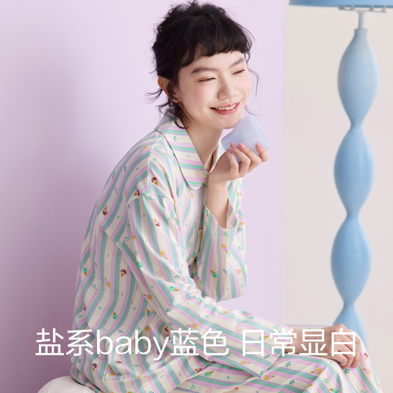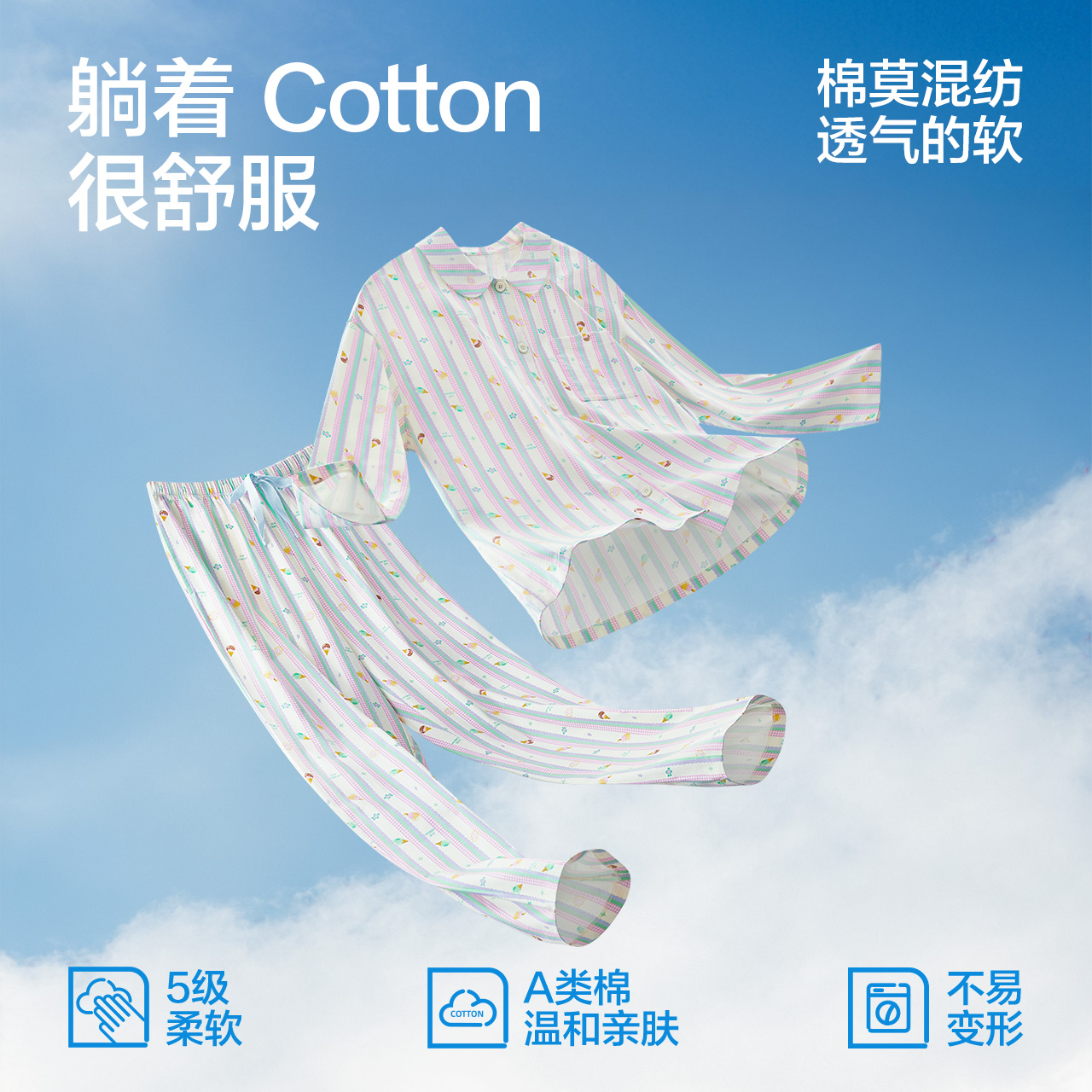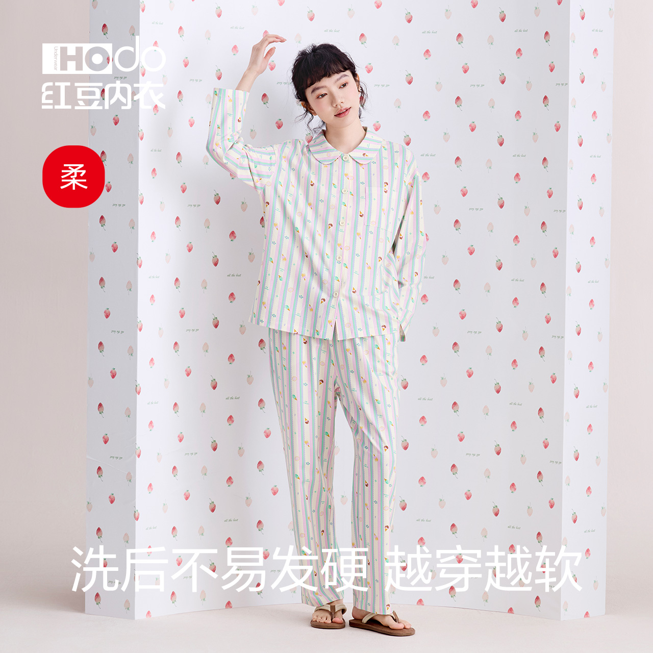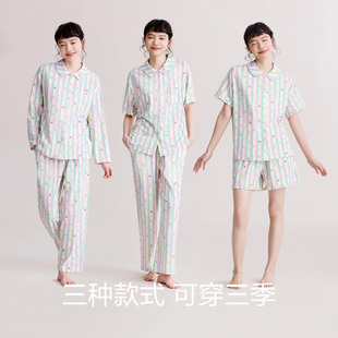家居服套装 红豆女士睡衣棉莫代尔A类春秋款 短袖 甜美条纹夏季 长袖