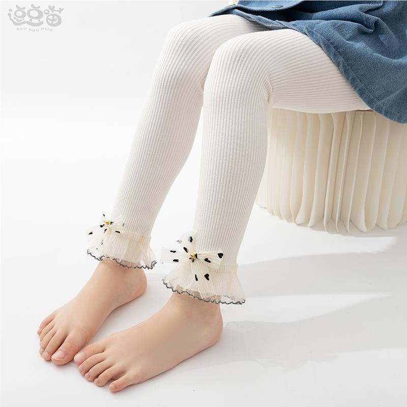 儿童长裤 女童打底裤 纯棉白色宝宝春装 外穿洋气2023新款 子 春秋薄款