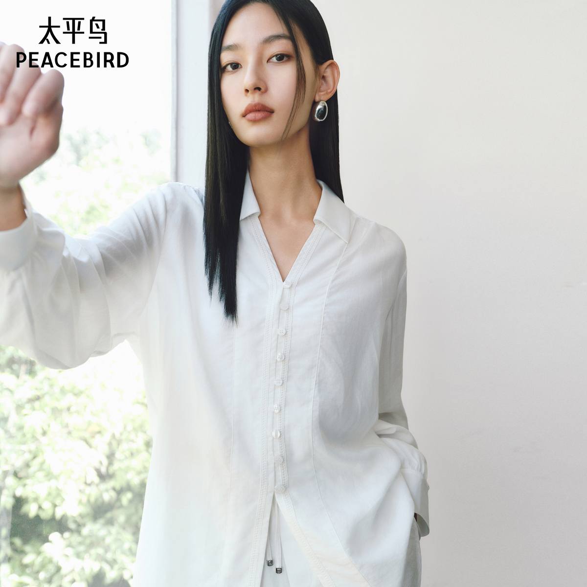 V领莱赛尔长袖 新款 衬衫 法式 太平鸟 花边门襟衬衣抽绳短裤 25夏季