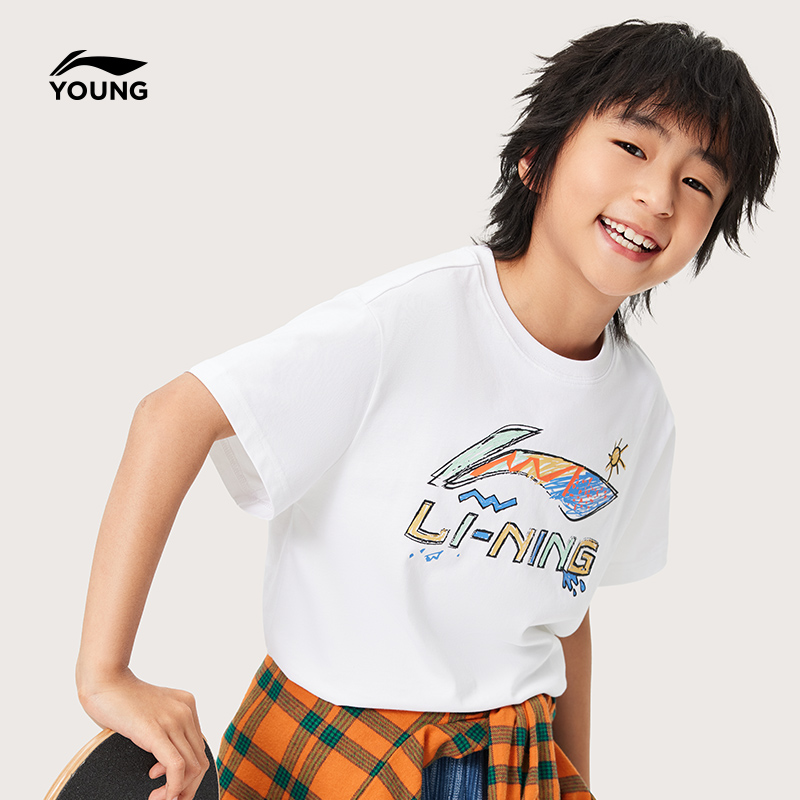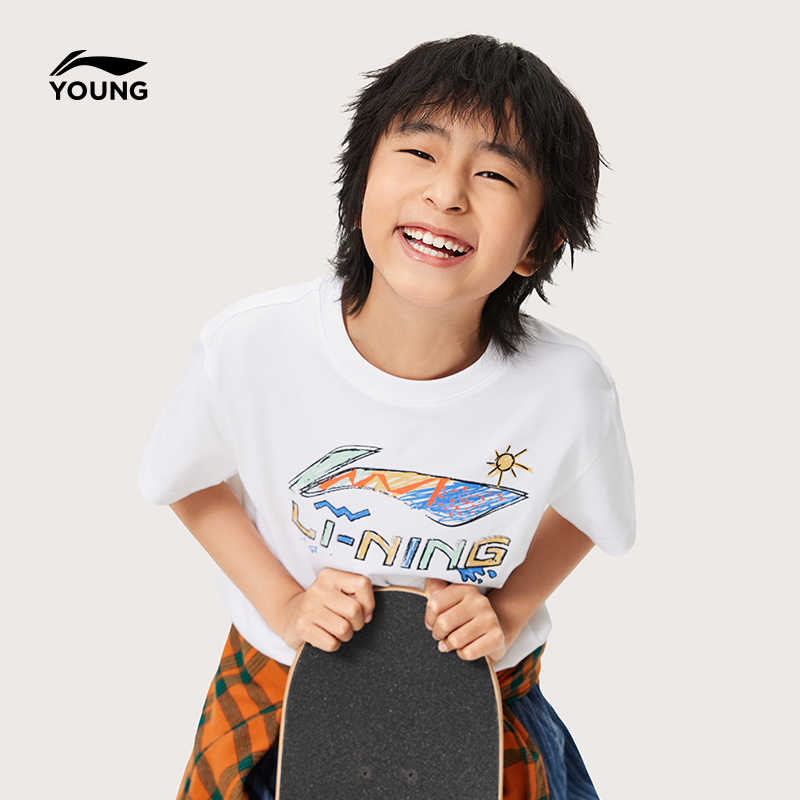 动生活系列夏季 T恤男女小大童2025新款 针织运动上衣 短袖 李宁童装
