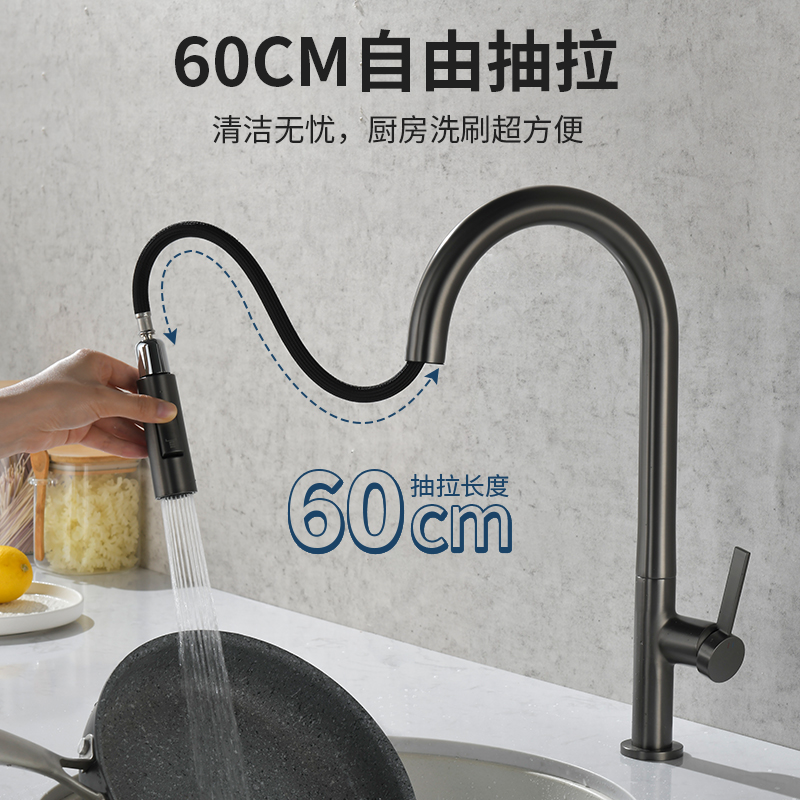 洗菜盆抽拉式 厨房水龙头替换头配件花洒喷头出水嘴防溅增压可伸缩