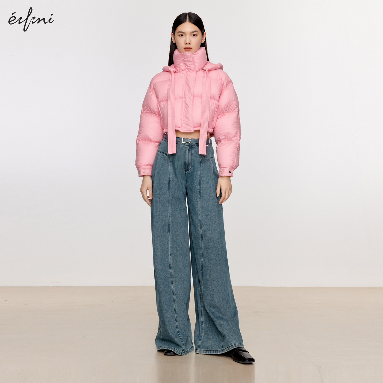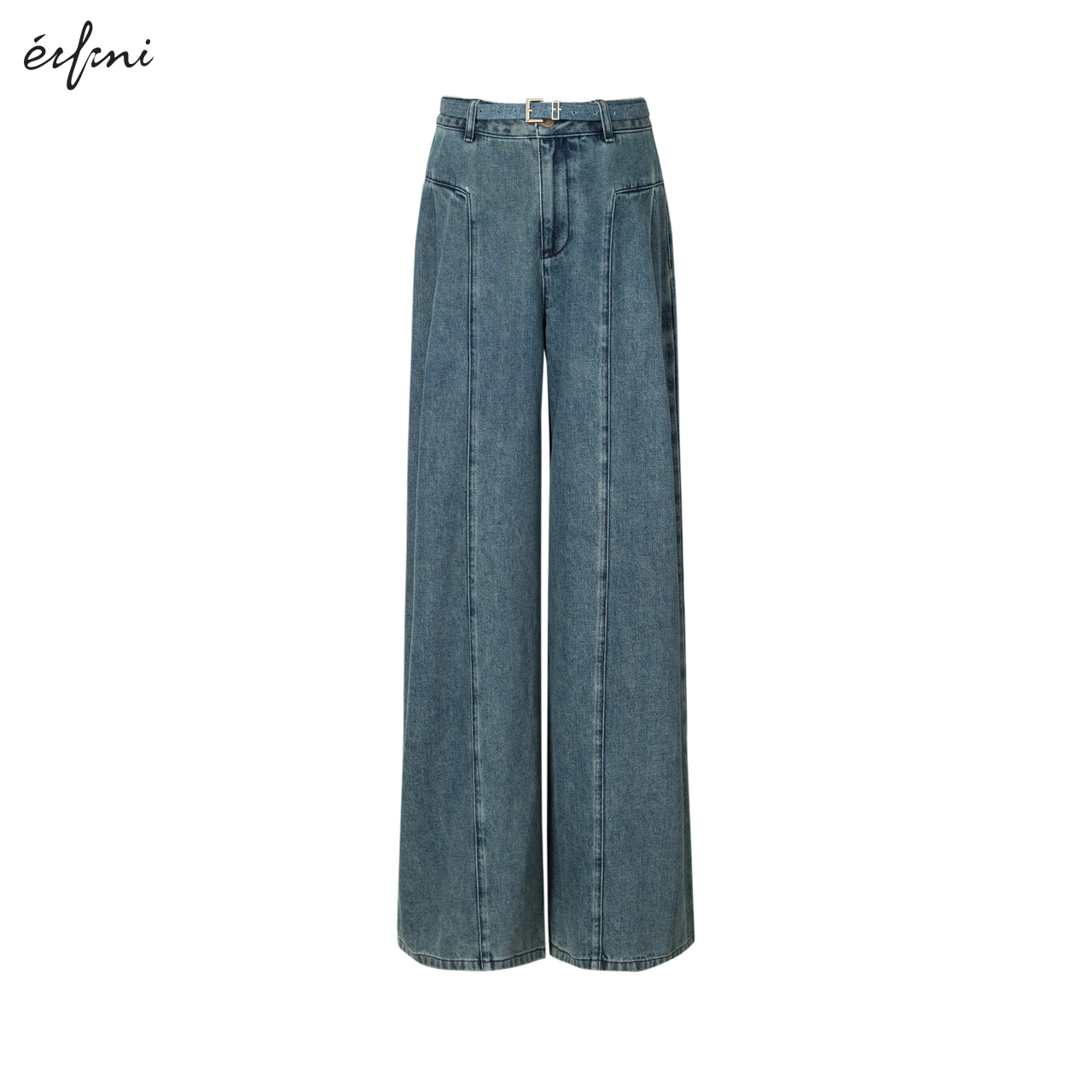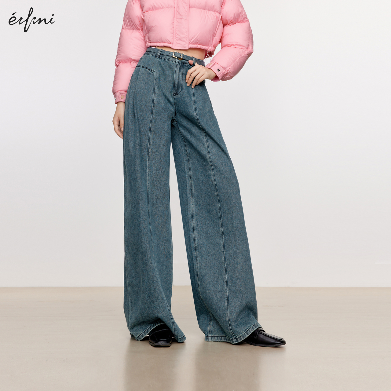 春秋长裤 牛仔裤 女 复古水洗蓝色高腰阔腿裤 伊芙丽outlets店美式