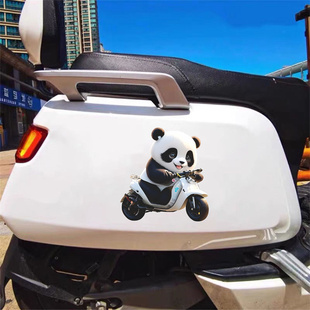 可爱骑车大熊猫电动摩托车汽车贴纸卡通车贴大面积划痕遮挡贴防水