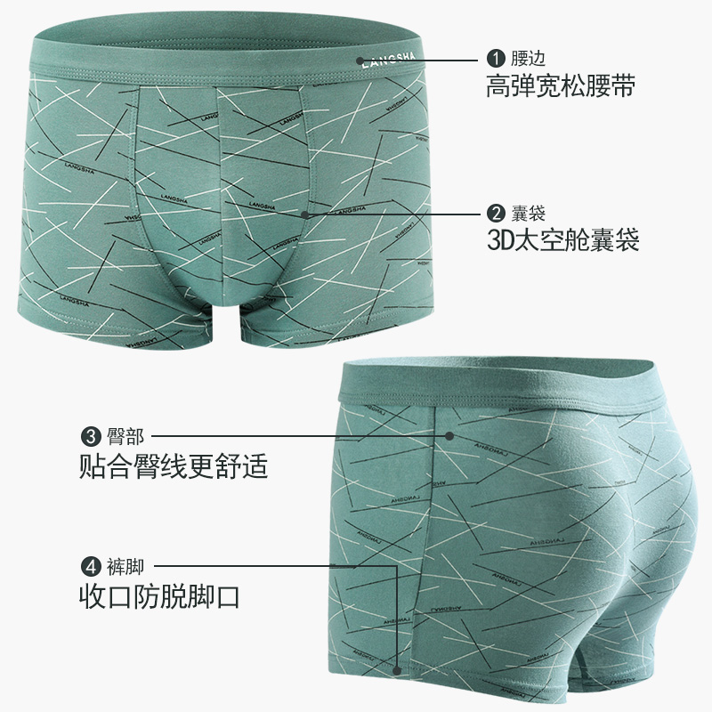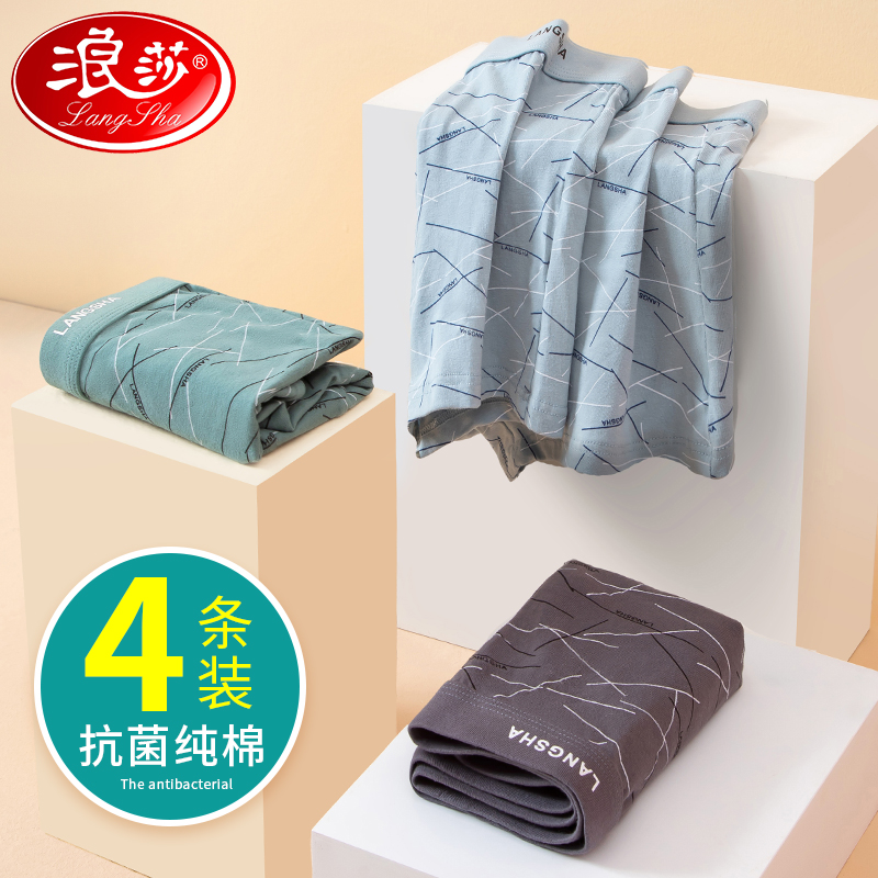 运动四角裤 浪莎男士 青年男款 男纯棉10A抗菌裆男生平角短裤 头 内裤