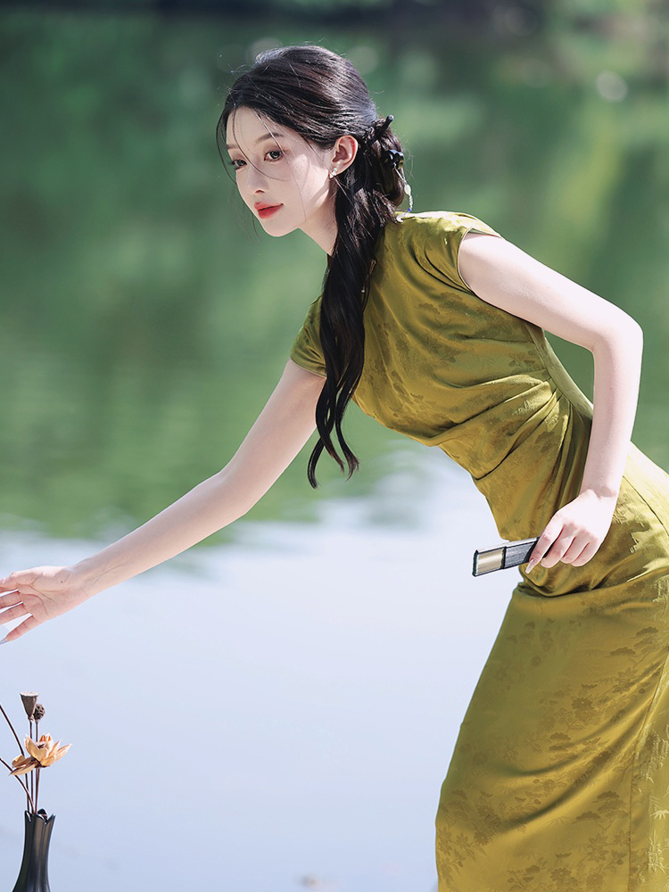 改良年轻款 女夏季 气质日常显瘦显白连衣裙 旗袍2025新款 绿色新中式