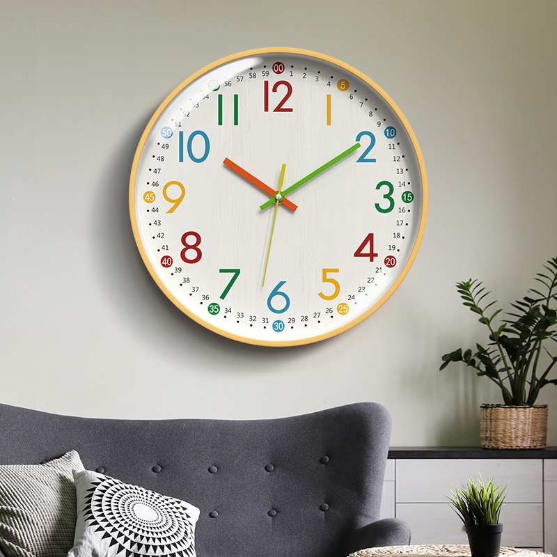 学习时钟挂墙免打孔挂钟客厅钟表儿童时间管理卧室静音家用石英钟