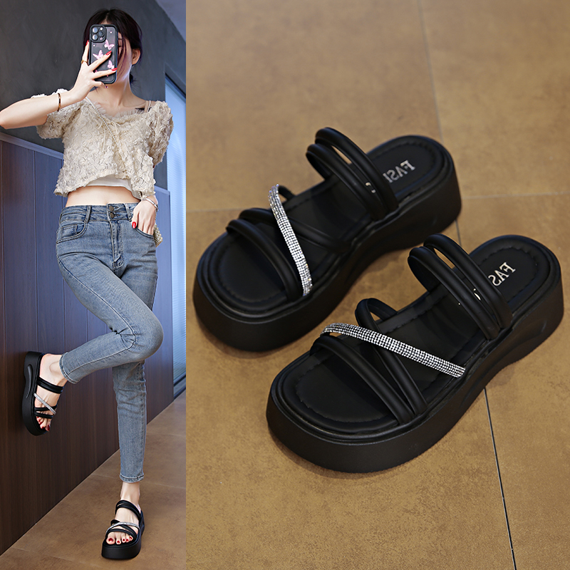 百搭厚底仙女风绝美孕妇凉鞋 高级感黑色两穿凉鞋 女夏外穿2025新款