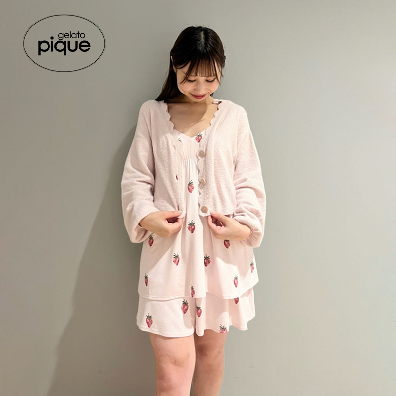 PWNT244068 针织开衫 gelato pique秋冬女睡衣纯色花边长袖