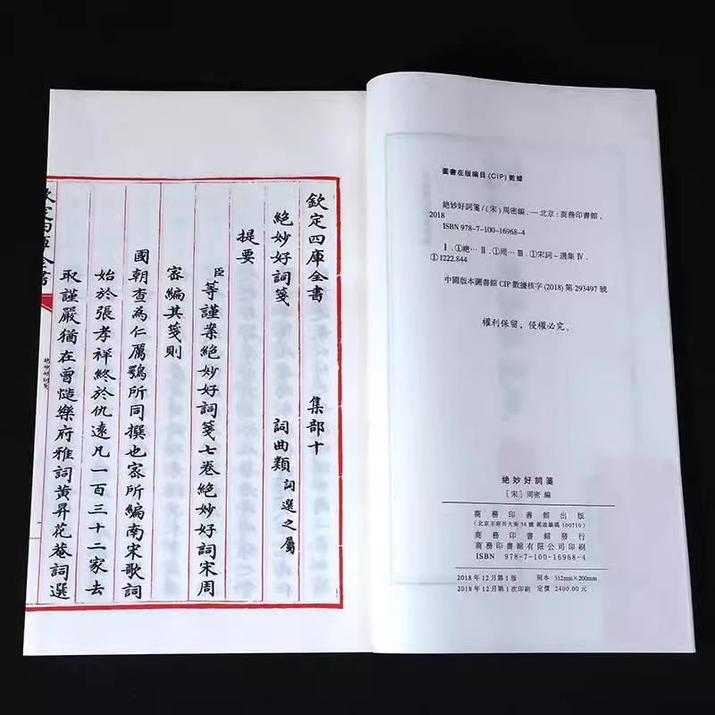 9787100169684 商务印书馆 绝妙好词笺文津阁本四库全书宣纸线装 书籍1函4册