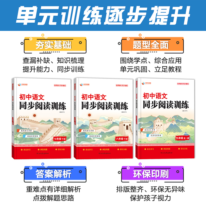学习典型案例强化训练 初中生阅读理解专项训练书单元 2025大单元 阅读初中语文同步阅读训练七年级八年级上册下册九年级全一册人教版