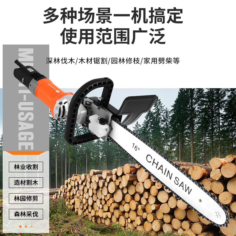 奥奔角磨机改装 电链锯链条电锯家用小型手持多功能木工切割伐木锯