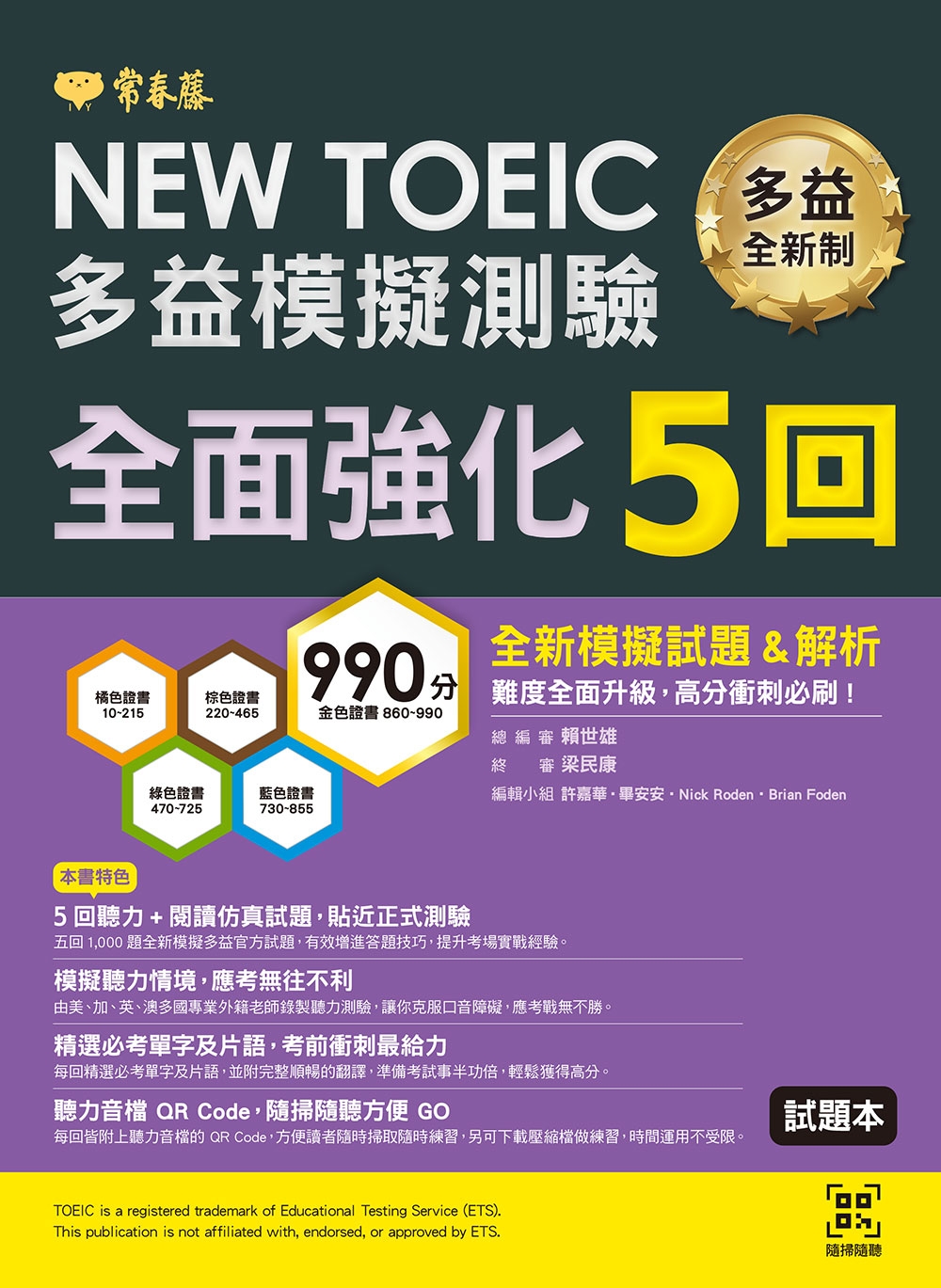 全面强化5回 试题本 常春藤 NEW 赖世雄 Code音档 TOEIC多益模拟测验 预售 详解本