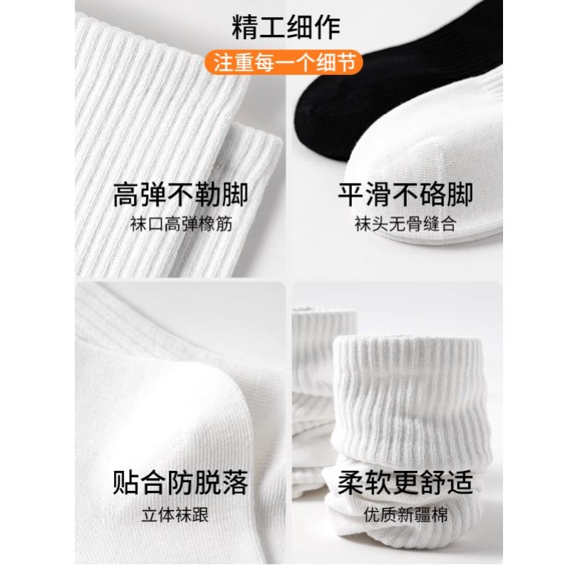全棉短袜子女春秋季 中短筒袜无骨 纯棉吸汗防臭抗菌透气运动夏薄款