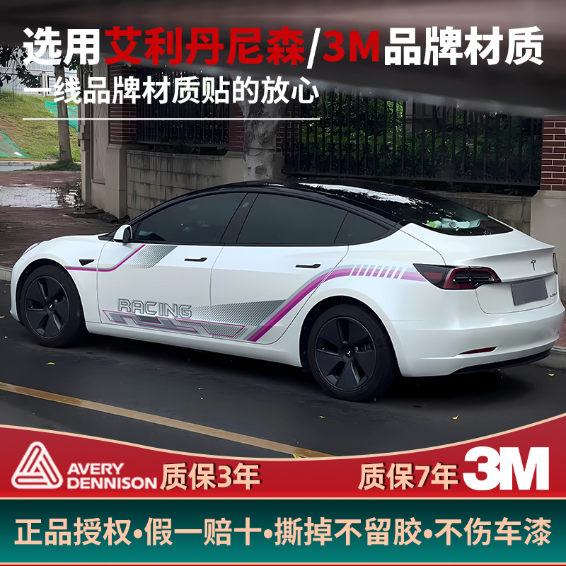 饰贴汽车改装 适用19 3车身拉花贴特斯拉运动装 Model 创意贴纸 25款