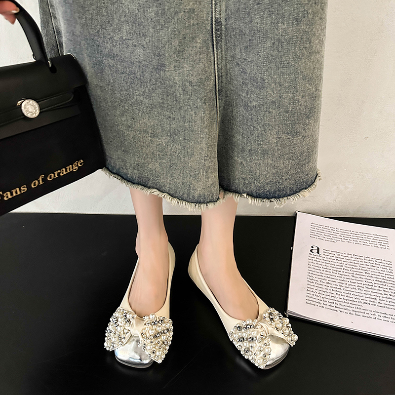 配裙子蝴蝶结豆豆鞋 小香风浅口单鞋 平底通勤孕妇鞋 新款 女2025夏季