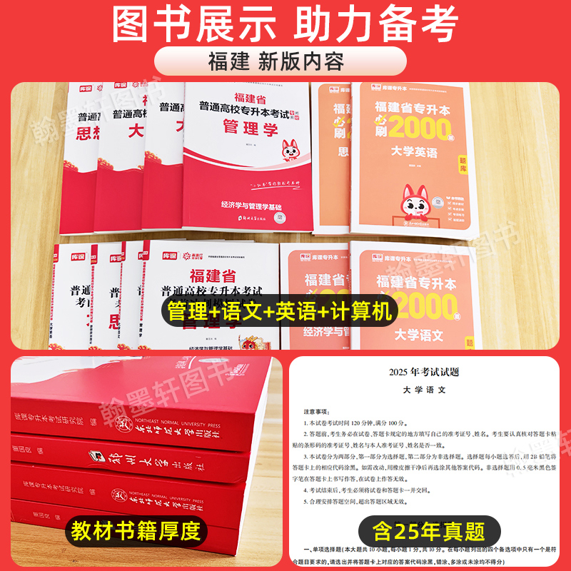 库课福建专升本复习资料2026年经管类理工12教材必刷题历年真题试卷省统招考试英语文高等数学政治信息技术基础文史教育医学克2025