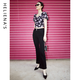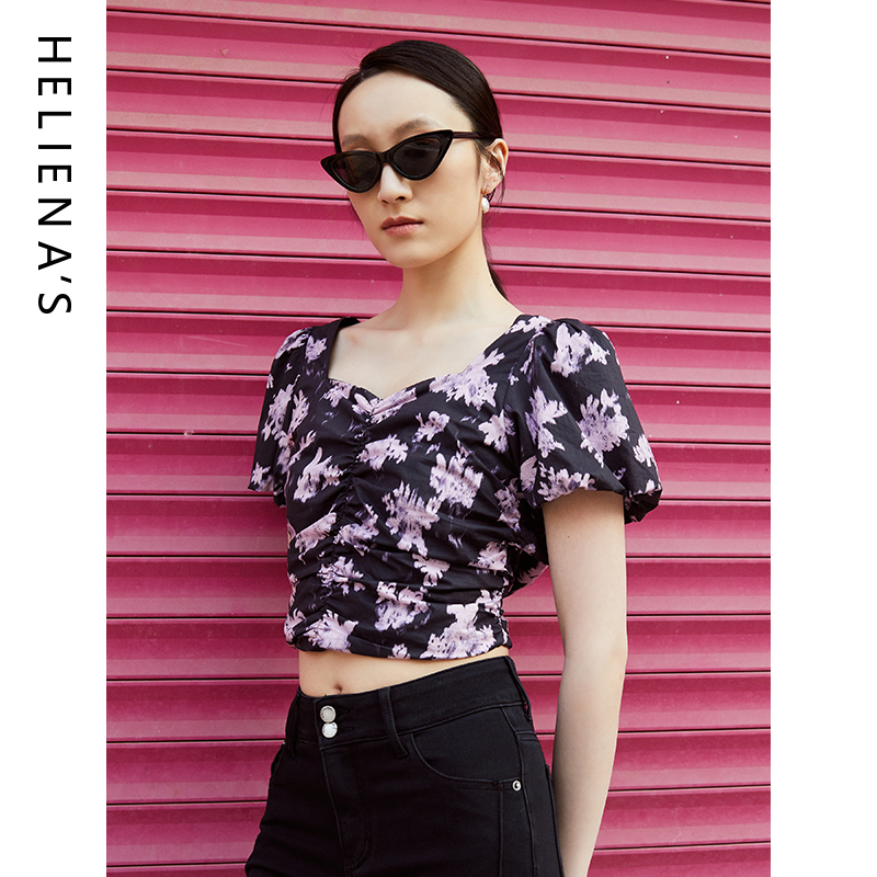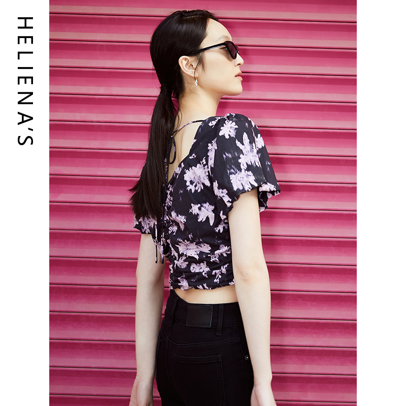 气质爆款 海兰丝奢睿夏季 纯棉印花女小衫 商场同款 设计感上衣女 新款