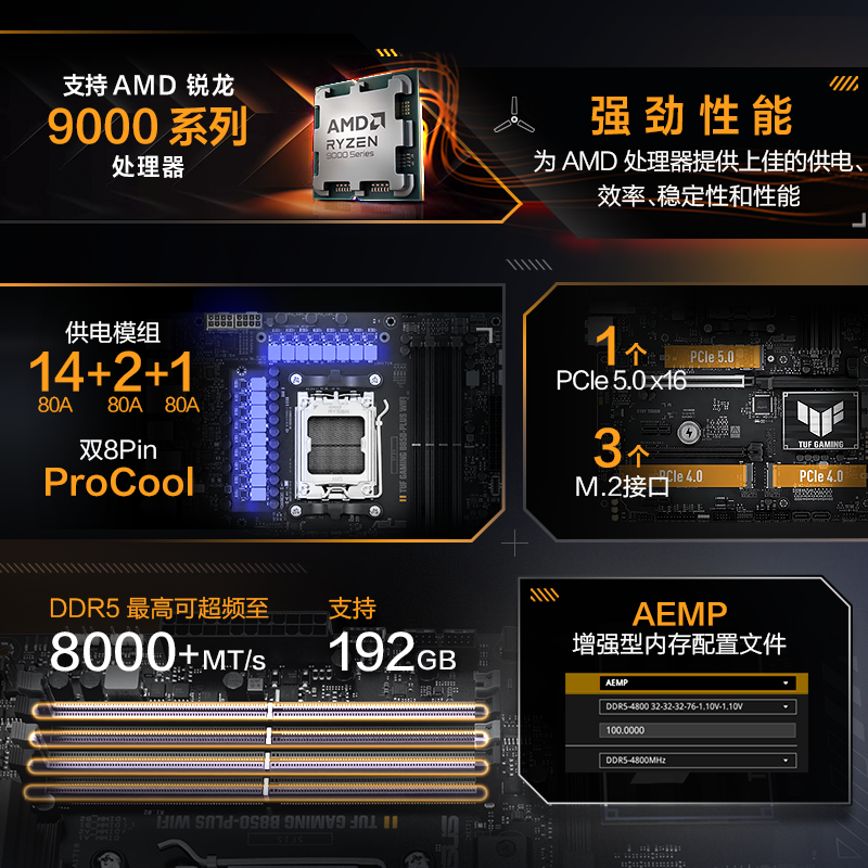 PLUS Asus B850 GAMING WIFI电竞游戏主板旗舰店支持DDR5 华硕TUF