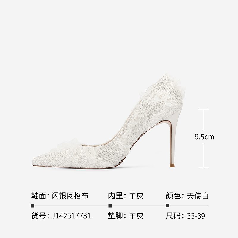 大女主 婚鞋 百思图25秋新款 尖头女浅口单鞋 裸色高跟鞋 双11预售
