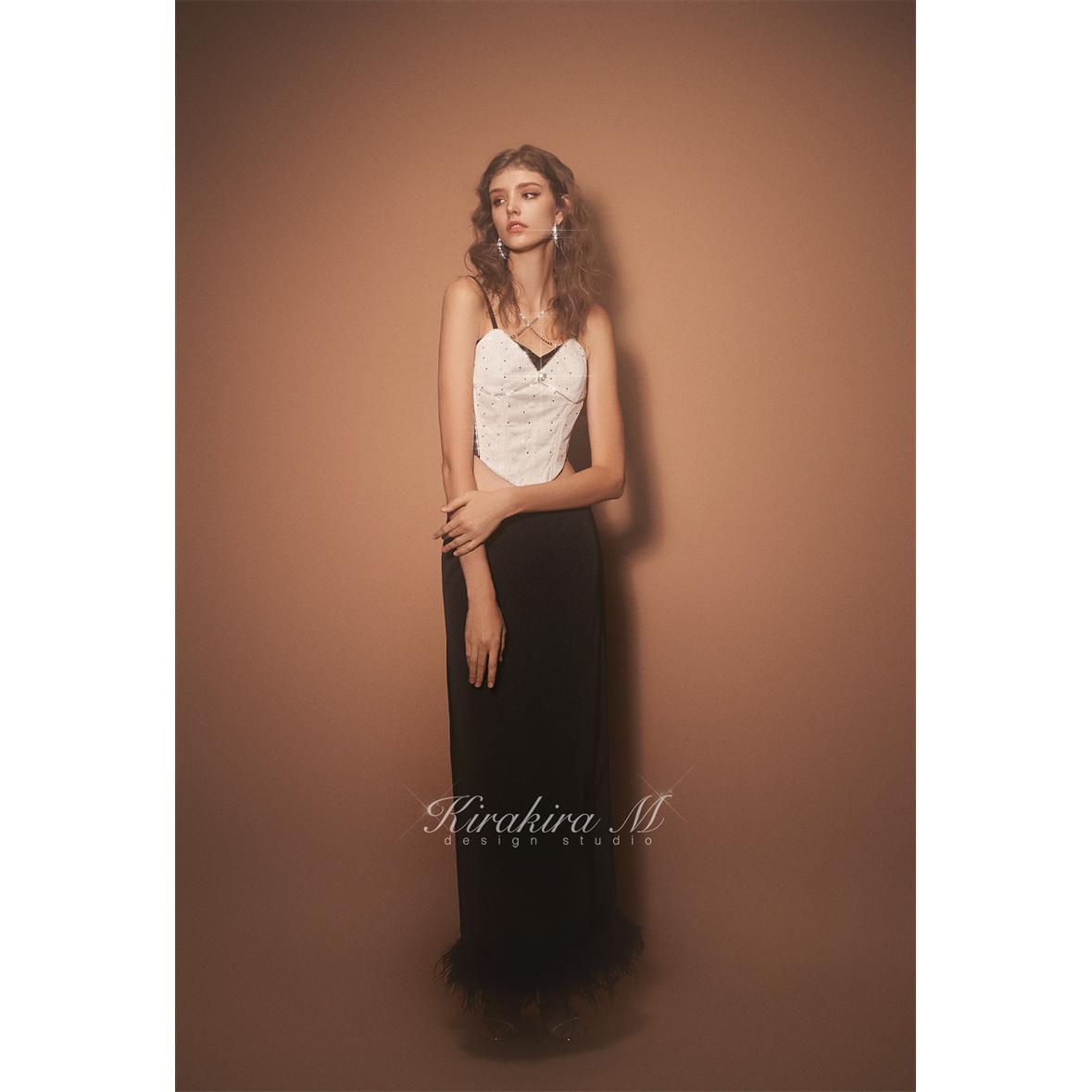M钻饰满天星鱼骨细闪开叉羽毛低腰长裙 Kirakira 清货折半裙L